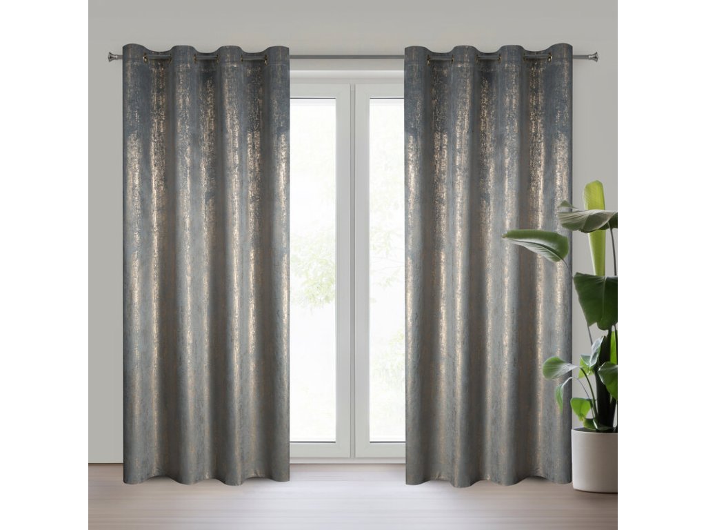 Dodajte svojmu domovu luxus, teplo a šmrnc s týmto hotovým závesom z kvalitnej zamatovej tkaniny. Jemná, hebká štruktúra zamatového materiálu v kombinácii s lesklou, leštenou zlatou potlačou vytvára výnimočný dizajn, ktorý oživí každý interiér a dodá mu nádych noblesy.
