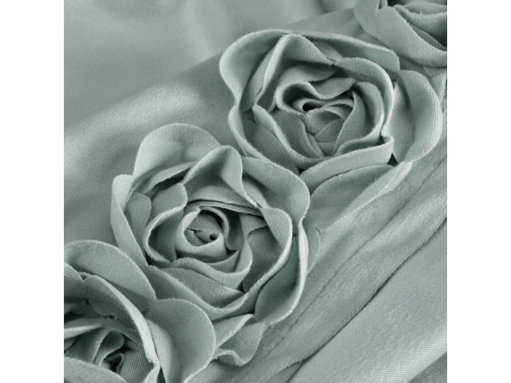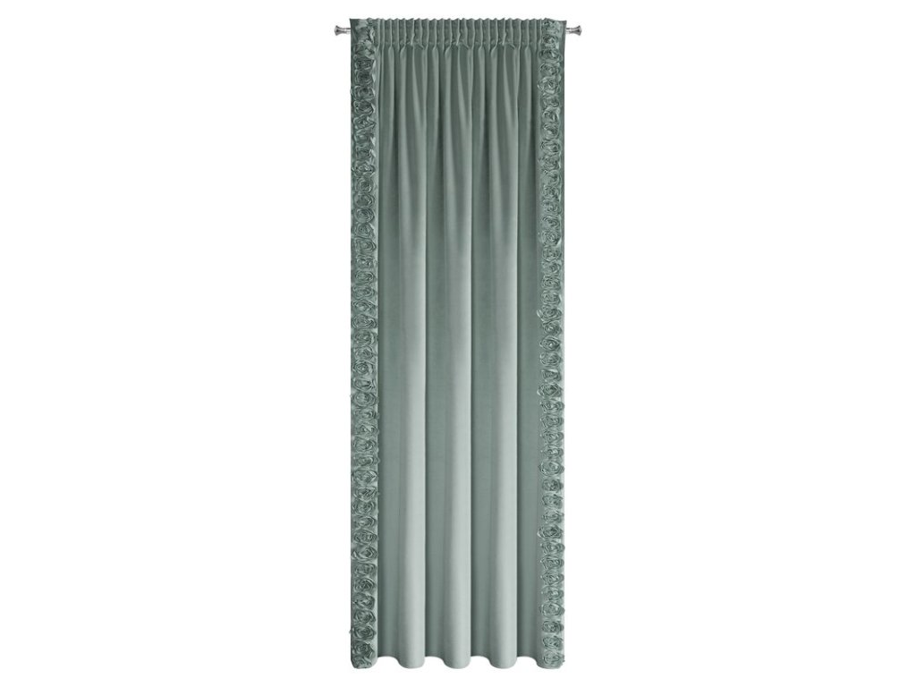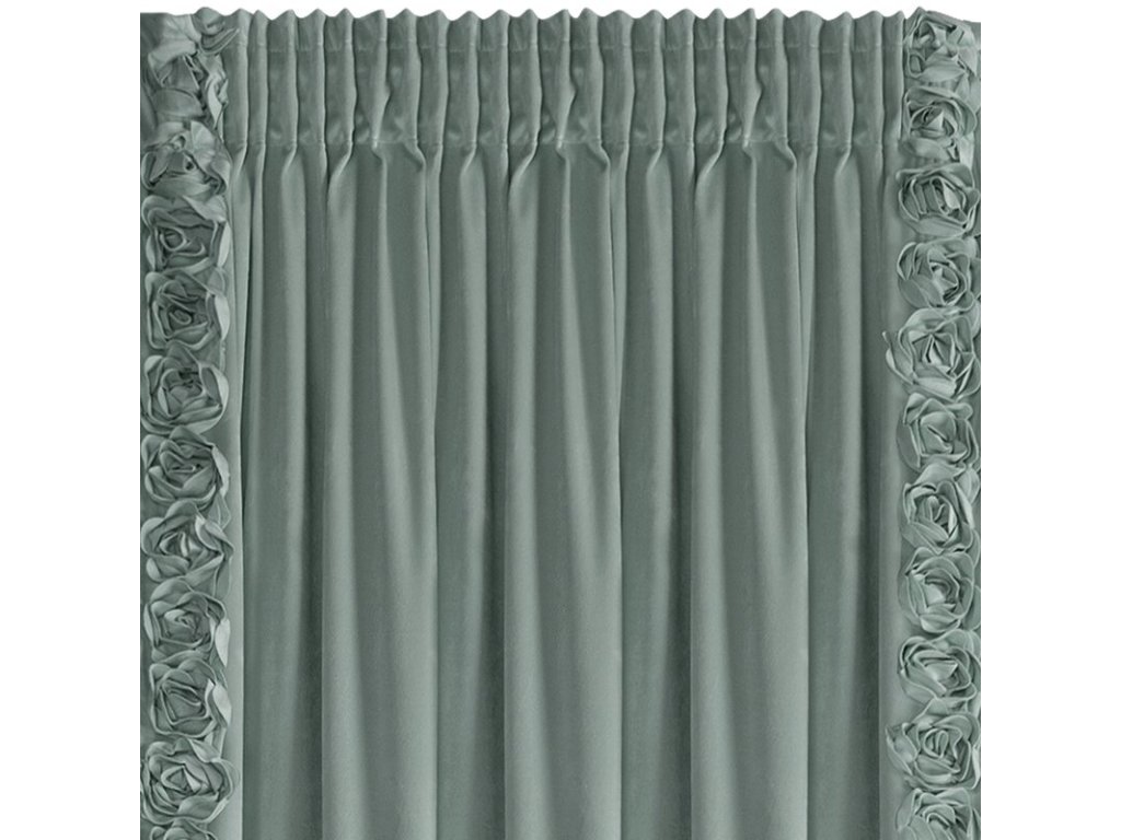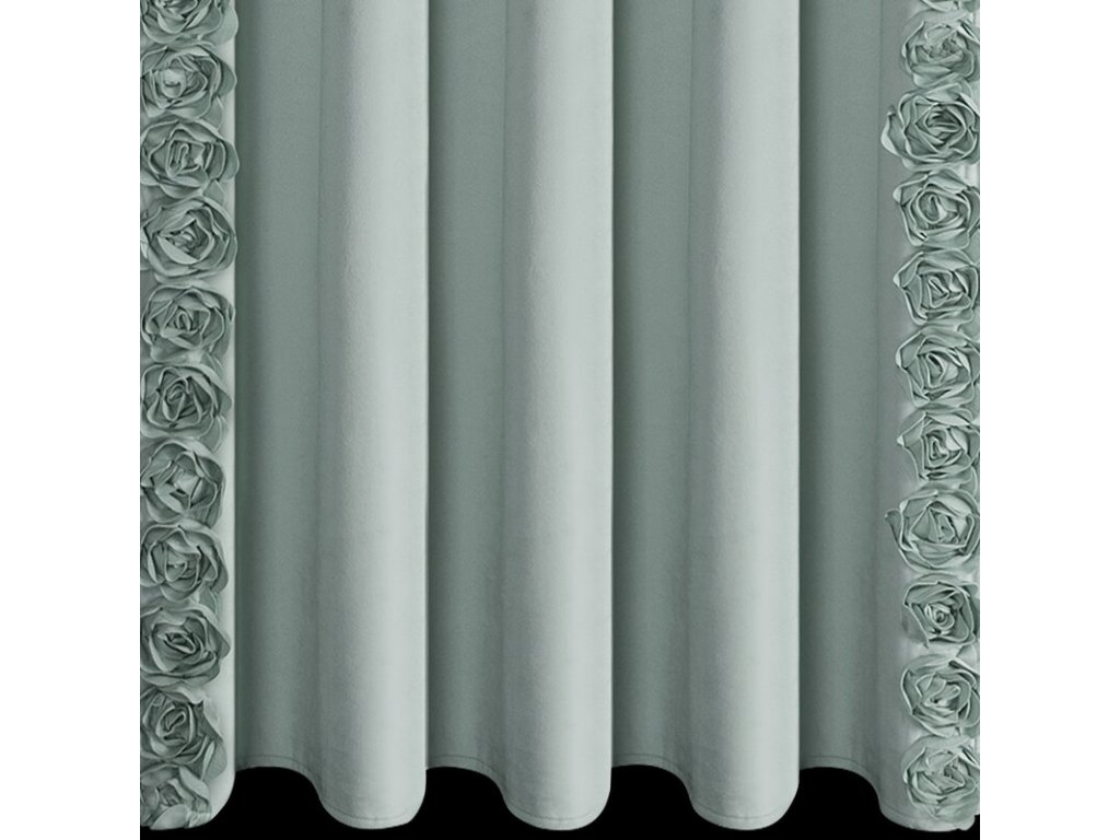 Vyrobený je z jemného zamatového materiálu so subtílnym leskom, ktorý dodáva priestoru útulnosť a teplo. Po stranách je zdobený 3D pruhmi látkových ruží, ktoré pôsobia jedinečne a dodávajú závesu romantický, no zároveň moderný charakter.