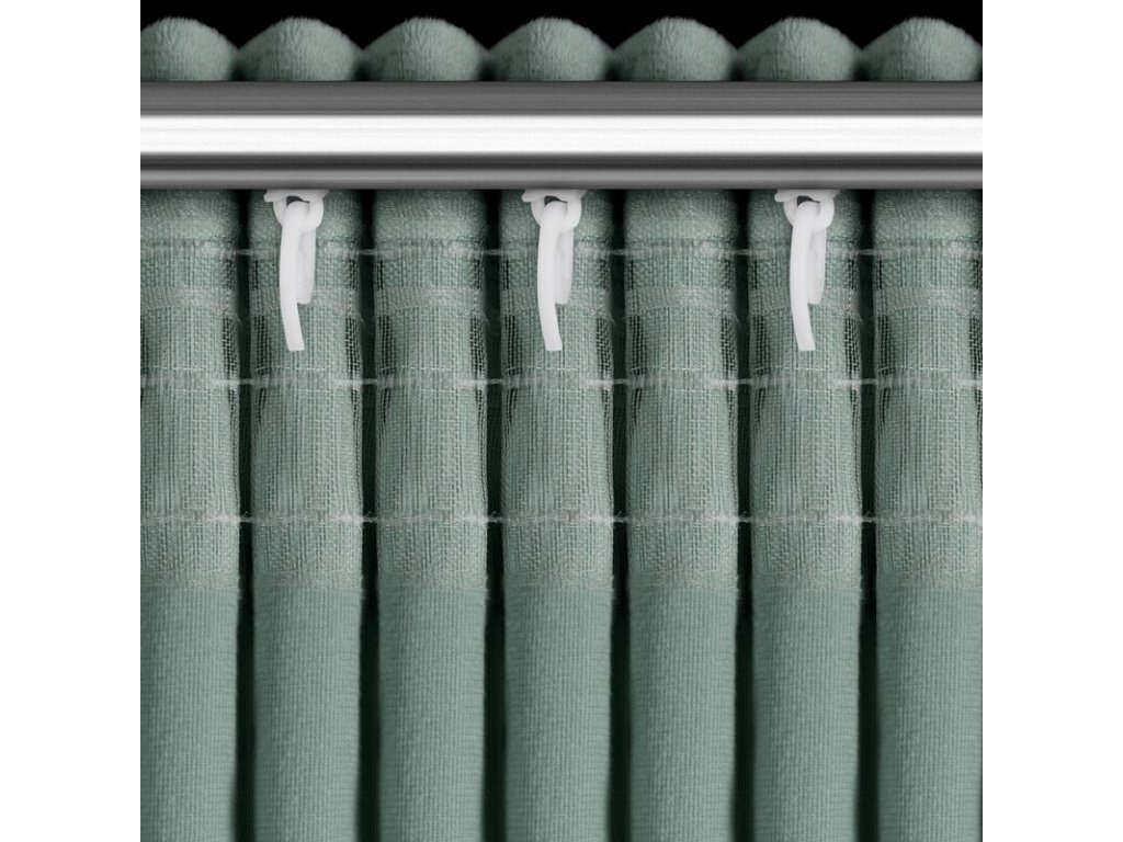 Riasiaca páska umožňuje jednoduché zavesenie a rovnomerné riasenie, vďaka ktorému záves vytvára prirodzené, elegantné záhyby. Mentolová farba pôsobí sviežo, harmonicky a výborne ladí so svetlým nábytkom, béžovými či zlatými doplnkami.