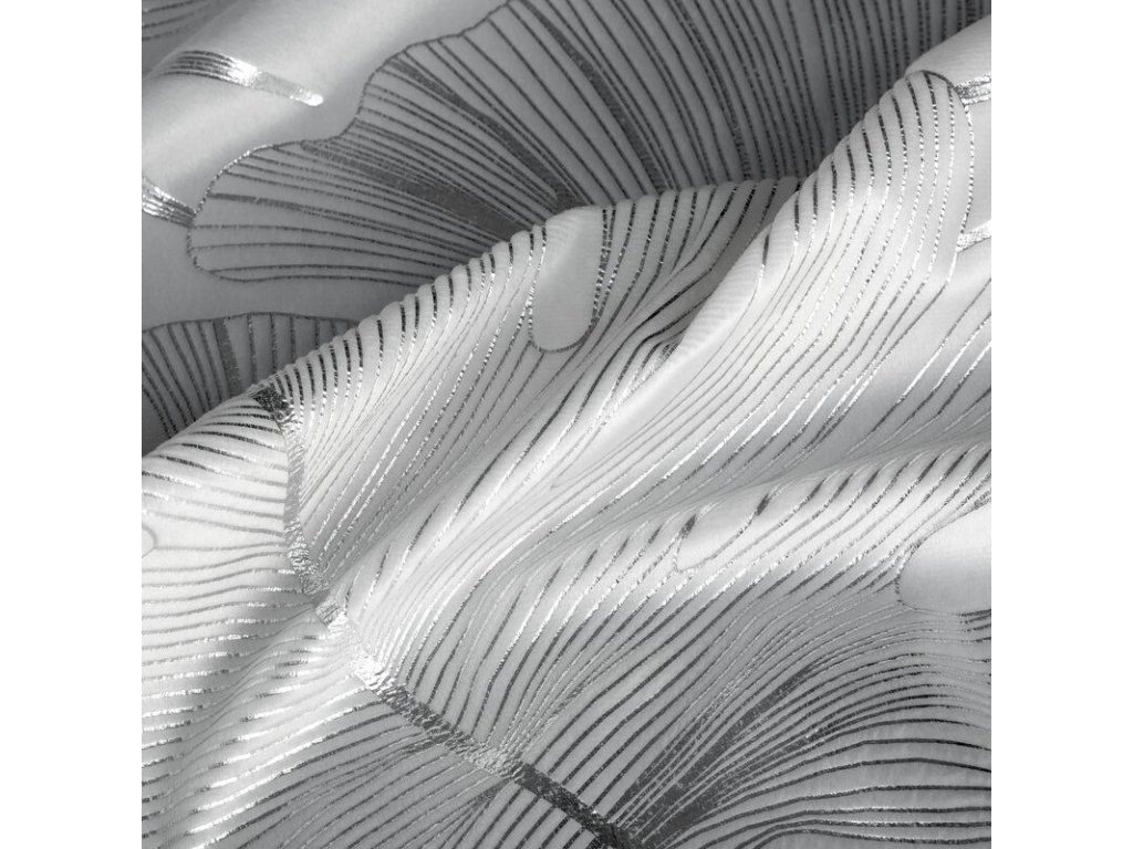 Zamatový materiál pôsobí luxusne a vďaka lesklej potlači s decentným vzorom dodáva priestoru svieži a moderný vzhľad. Biely odtieň opticky zväčšuje miestnosť, prepúšťa dostatok svetla a zároveň vytvára pocit harmónie a čistoty.