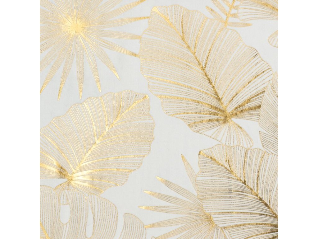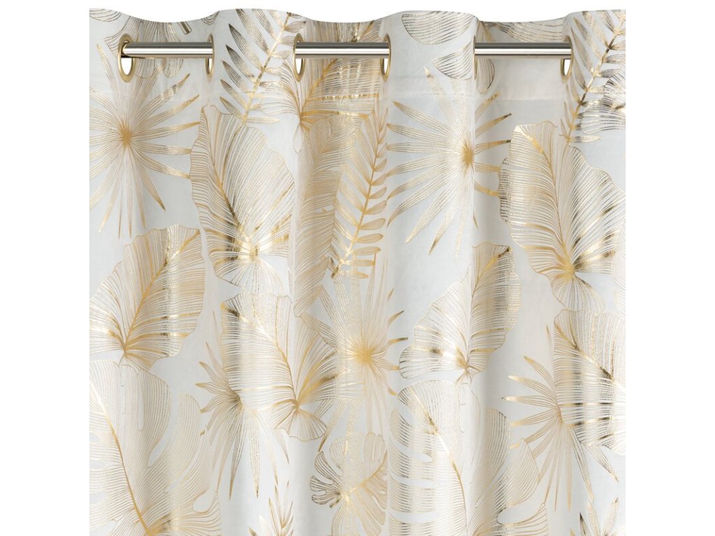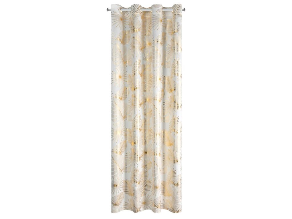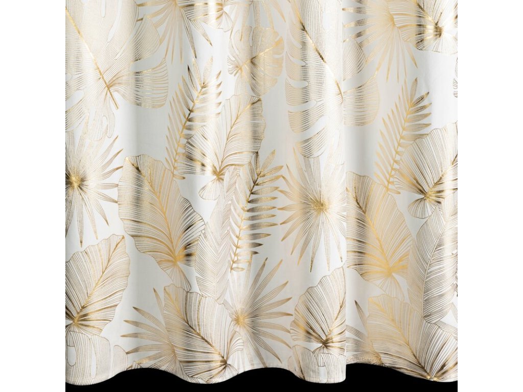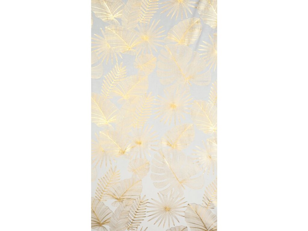 Zamatový materiál pôsobí príjemne na dotyk a vďaka zlatej potlači s jemným leskom dodáva priestoru noblesný, teplý a útulný charakter. Kombinácia krémovej a zlatej farby pôsobí nadčasovo a ľahko sa kombinuje s moderným aj klasickým zariadením.