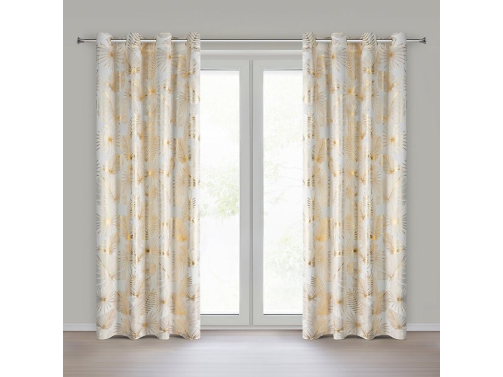 Hotový zamatový záves ZARIA s lesklou potlačou – krémový, 140 × 250 cm