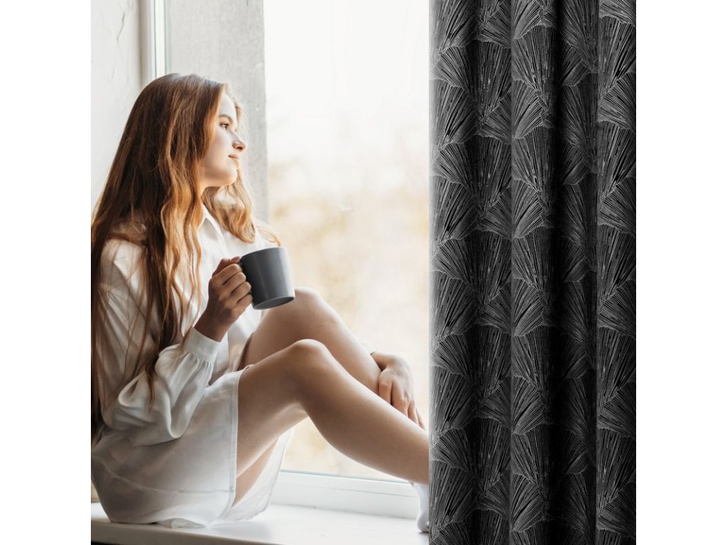 Záves je vyrobený z kvalitnej zamatovej tkaniny, ktorá pôsobí luxusne, príjemne na dotyk a krásne splýva zo záclonovej tyče do mäkkých, prirodzených vĺn. Okrem dekoratívneho efektu ponúka aj praktickú funkciu – spoľahlivo zatieni okno a obmedzí prenikanie slnečného svetla, čím vytvorí v interiéri príjemnú a útulnú atmosféru.