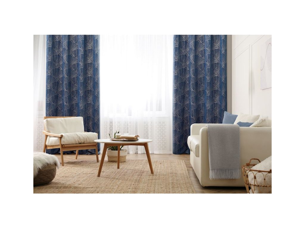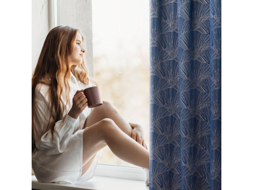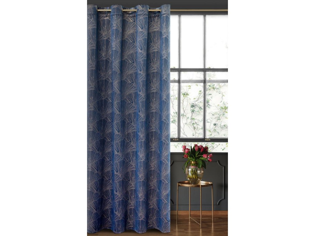 Hotový záves Pierre Cardin z lesklou potlačou - tmavomodrý