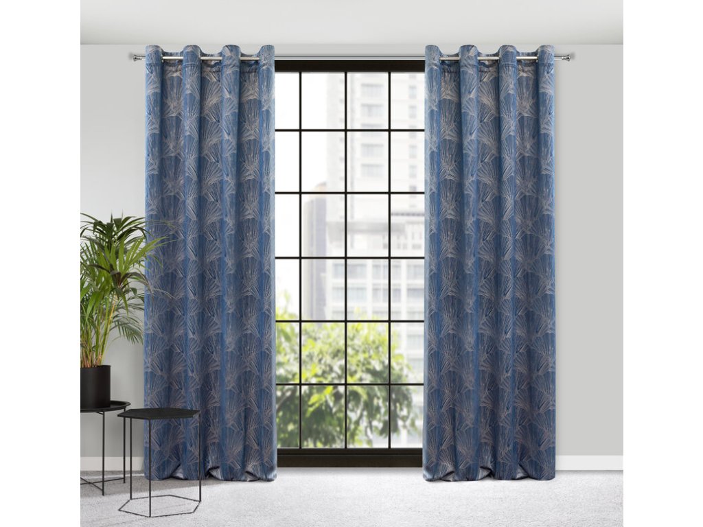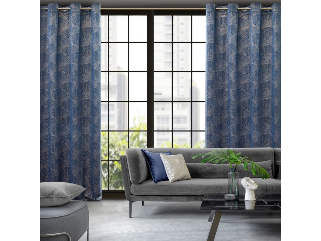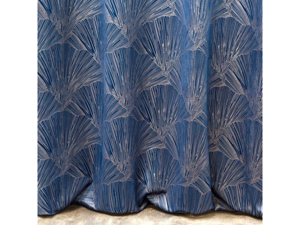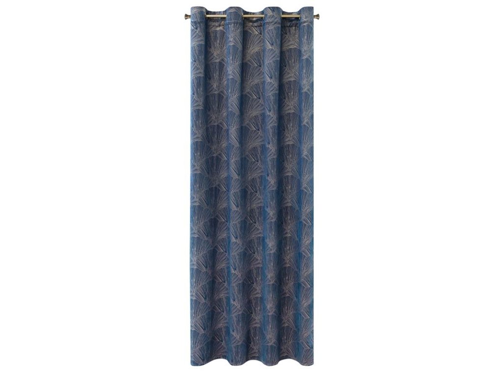 Doprajte si jedinečný dotyk luxusu so závesom z kolekcie PIERRE CARDIN. Jemný lesk symetrickej potlače s motívom listov ginka v striebristosivom odtieni vytvára elegantný kontrast s hebkým zamatovým podkladom a stane sa dominantným prvkom vášho interiéru.