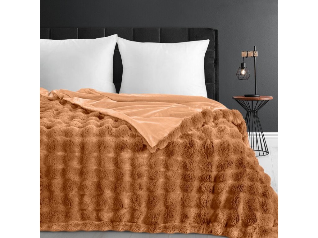 Hrubá kožušinová deka LILY s 3D efektom - medená
