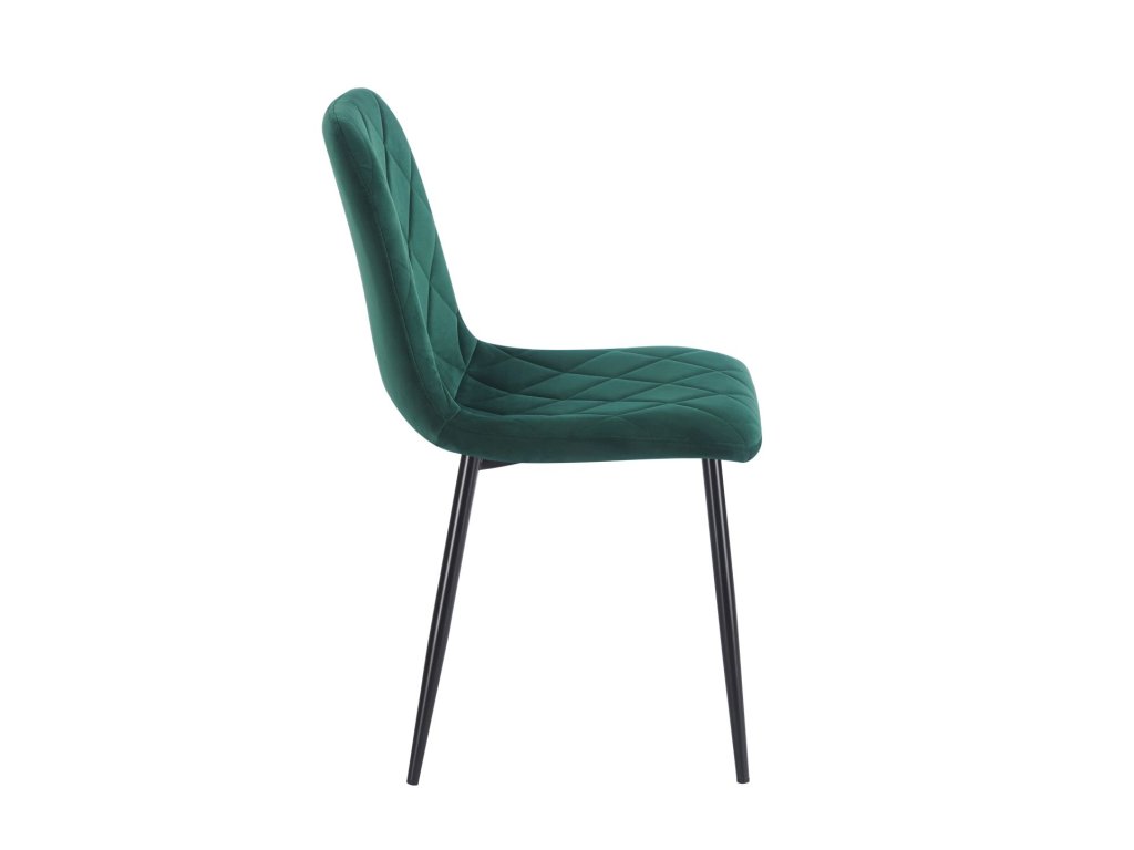 Jedálenská stolička Carlo kombinuje eleganciu s moderným dizajnom. Zamatové čalúnenie Davis Riviera v krásnej zelenej farbe vytvára luxusný vzhľad, zatiaľ čo čierne kovové nožičky s práškovým lakovaním dodávają kontrast a štýlovosť.