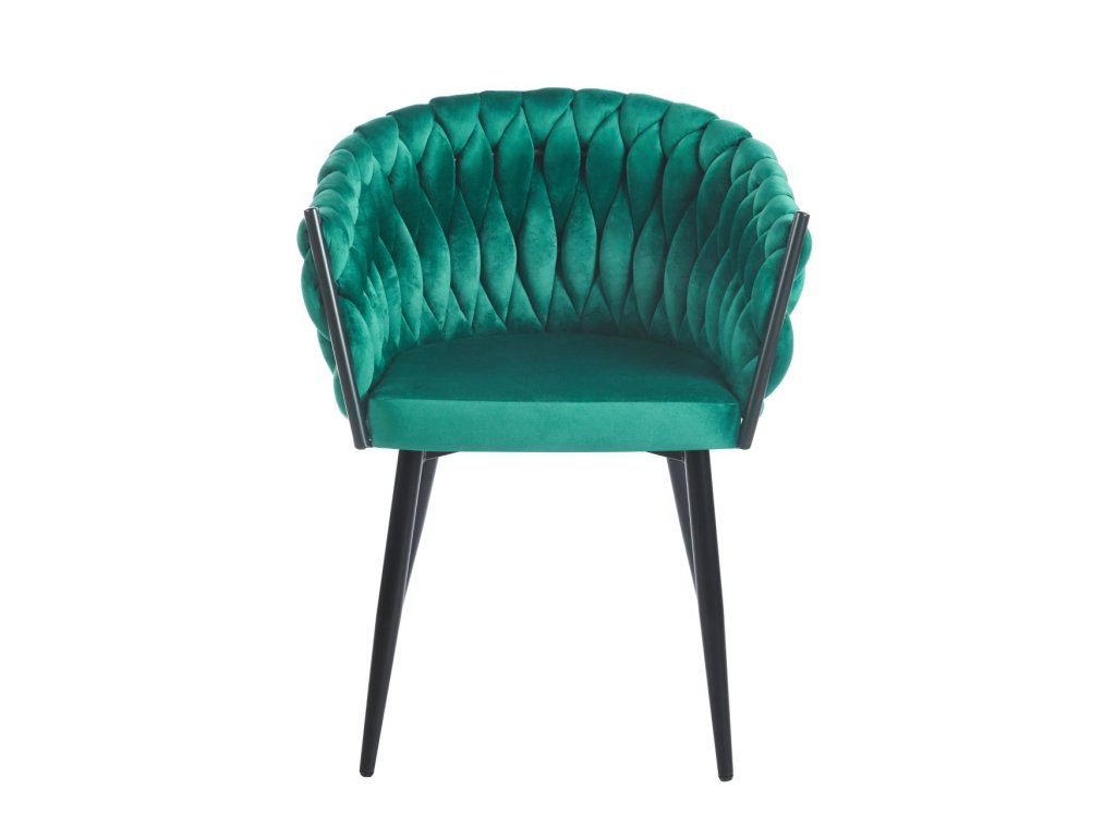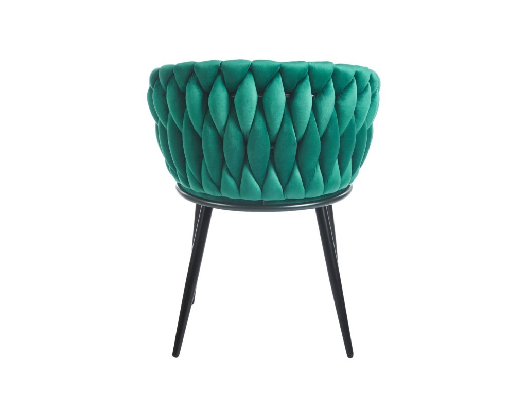 Jemná zamatová látka v zelenej farbe dodáva stoličke luxusný vzhľad a príjemný pocit pri dotyku.