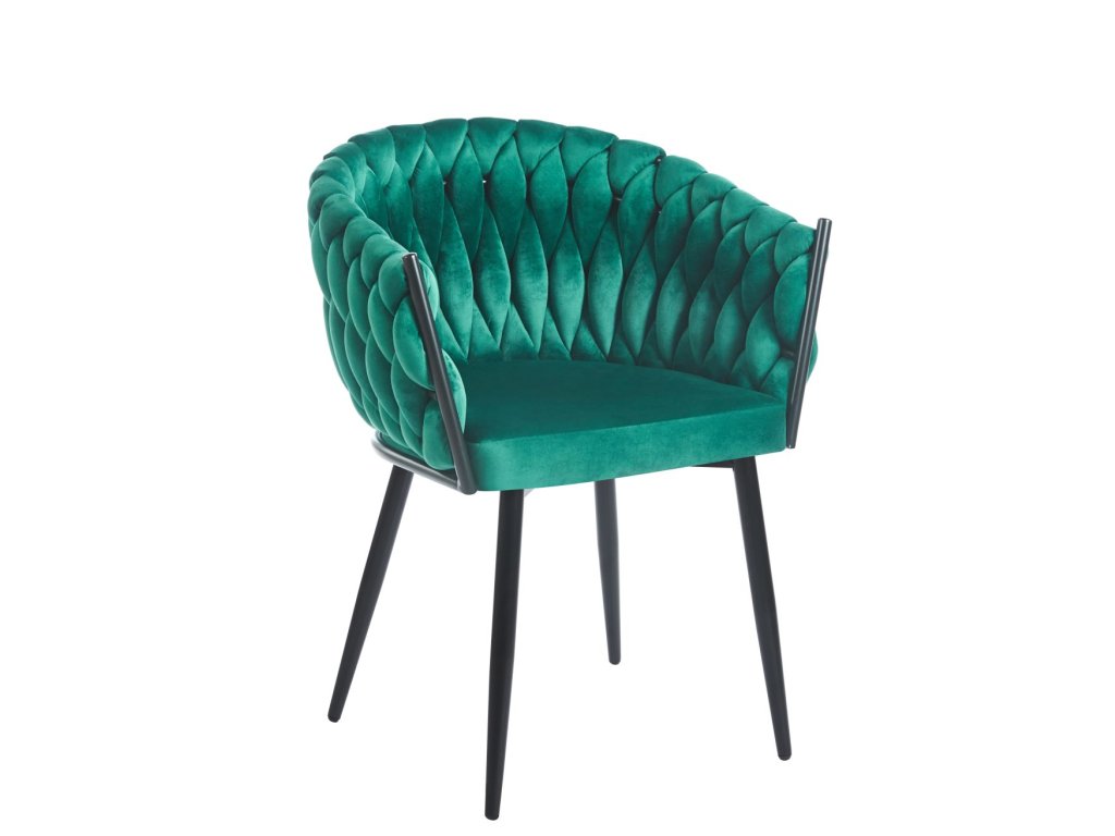 Jedálenská stolička PRINCESS kombinuje luxusný vzhľad so zeleným zamatovým čalúnením a modernú funkčnosť s čiernou kovovou konštrukciou. Zamatová látka dodáva interiéru eleganciu a hrejivosť, zatiaľ čo prašková úprava kovu zabezpečuje dlhú životnosť a odolnosť proti poškriabaniu.