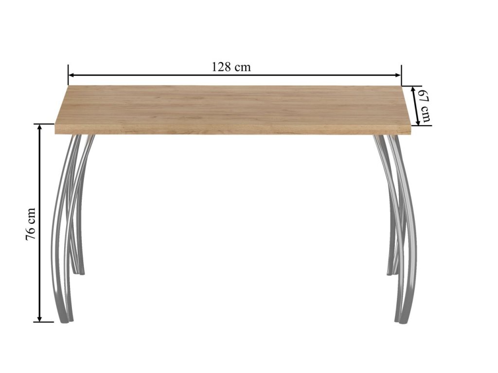Rozmery 128x67 cm sú optimálne pre menšie jedálne a kuchyne, pričom poskytujú pohodlné sedenie pre 4 osoby.