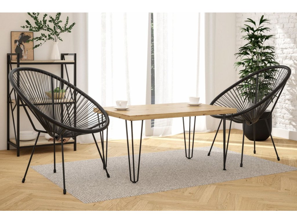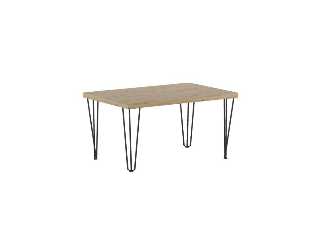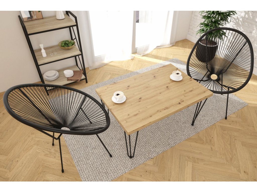 Predstavujeme vám moderný kávový stolík, ktorý spojuje prírodný vzhľad dubového dreva s industriálnym dizajnom čiernych kovových nôh. Pracovná doska v dekore dub artisan dodáva interiéru teplý a prirodzený charakter, zatiaľ čo kovové nohy zabezpečujú stabilitu a moderný vzhľad. Tento stolík sa perfektne hodí do súčasných interiérov, kde sa snúbi funkčnosť s estetikou.