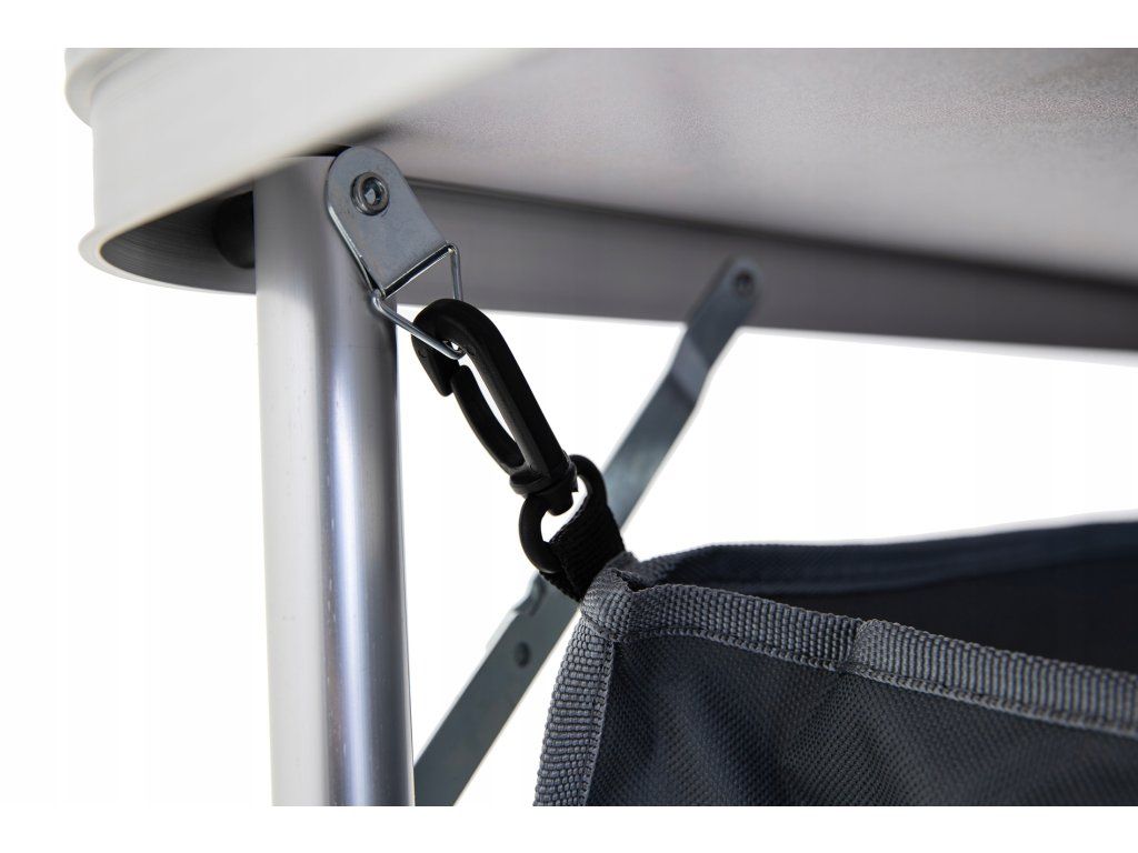 Skrinka disponuje kovovou pracovnou doskou pre bezpečné umiestnenie variča a dvoma bočnými doskami, ktoré rozširujú pracovný priestor pre každodenné tábornícke činnosti.