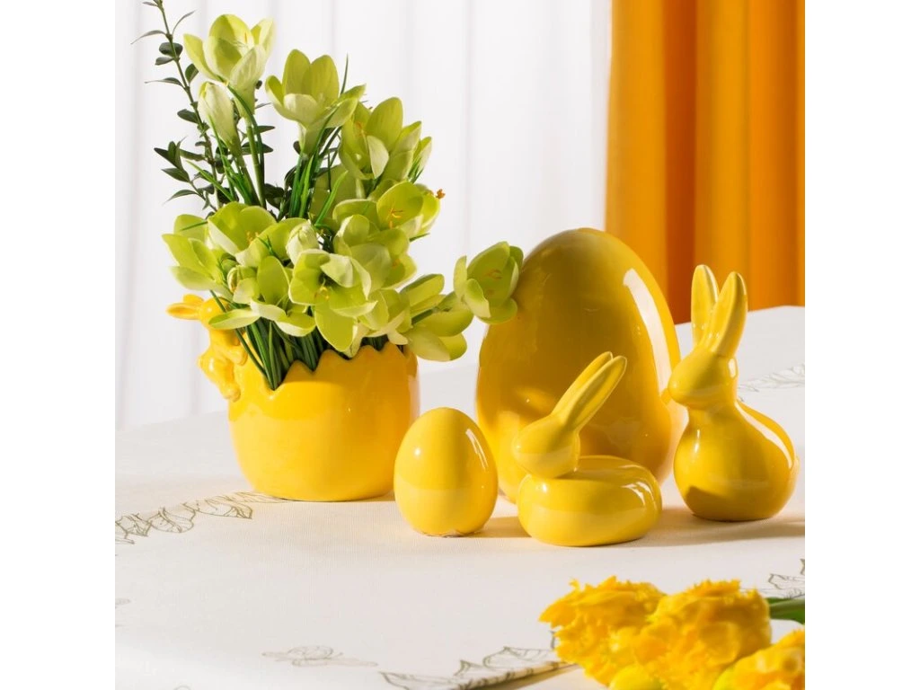 Lacnejšie dekorácie často blednú alebo sa poškodia už po niekoľkých sezónach. Keramická figúrka v tvare vajíčka s rozmerom 9x9x10 cm vám poskytne nielen dlhú životnosť, ale aj stabilný vizuálny efekt roky. Jemná glazúra a sýta žltá farba okamžite oživia každý veľkonočný stôl či poličku.