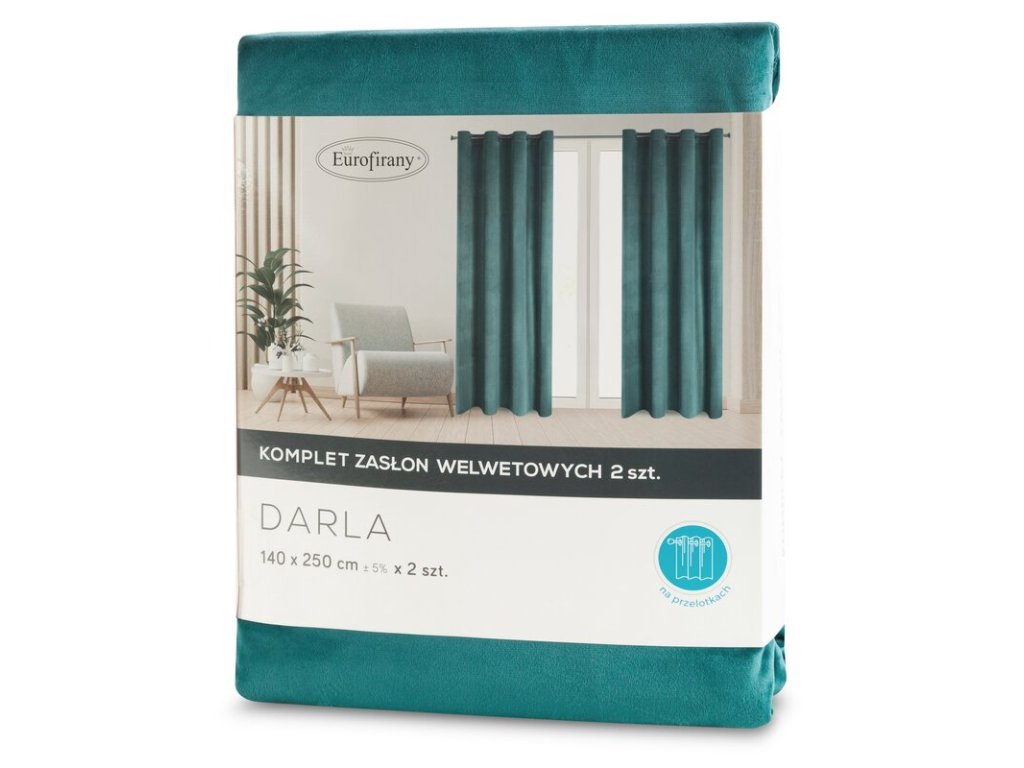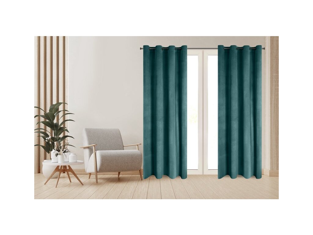 Komplet 2ks tmavotyrkysových zamatových závesov DARLA 140x250cm
