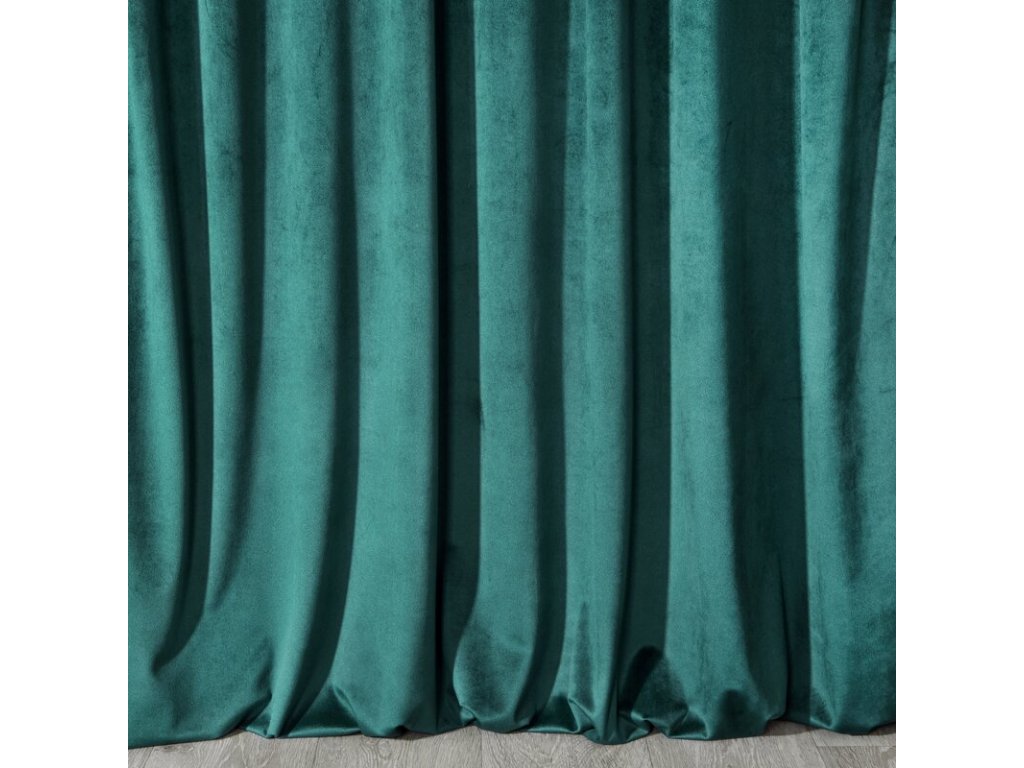 Tieto velvetové závesy v tmavotyrkysovej farbe sú ideálnou voľbou pre moderné interiéry, kde vytvárajú príjemný kontrast k svetlým stenám a dodávajú priestoru hĺbku, štýl a eleganciu.