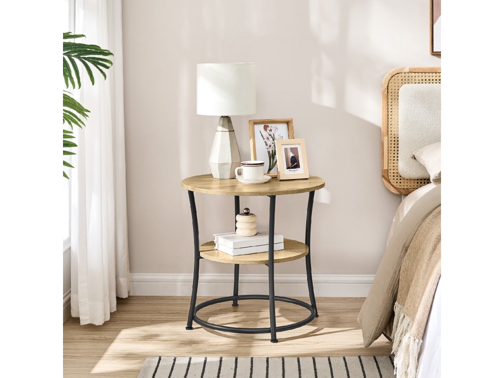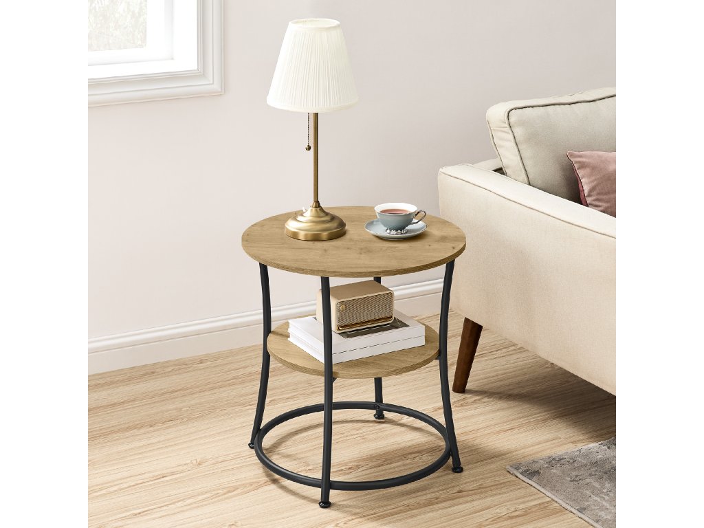 Vytvorte vo svojom interiéri útulnú a modernú atmosféru s týmto elegantným okrúhlym stolíkom v dekore Dub artisan, ktorý kombinuje svetlé drevené prevedenie s čiernou kovovou konštrukciou. Stolík pôsobí ľahko, čisté a nadčasovo, preto sa dokonale hodí do moderných, škandinávskych aj loftových interiérov.
