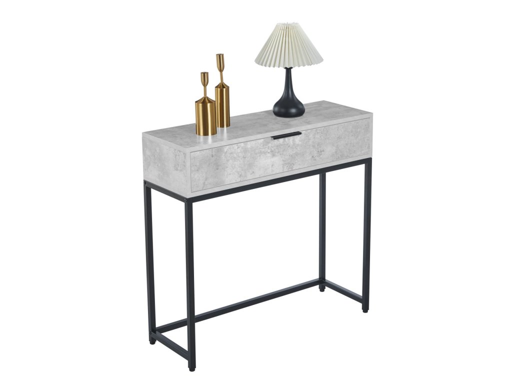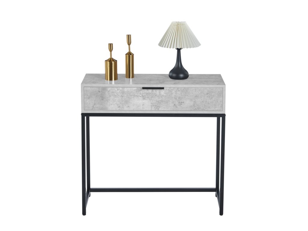 Rozmerovo kompaktný stolík s rozmermi 80 × 28 × 77 cm je ideálny do menších priestorov, pričom praktická zásuvka poskytuje úložný priestor pre drobné predmety. Vďaka svojmu dizajnu perfektne doplní moderné aj industriálne interiéry.