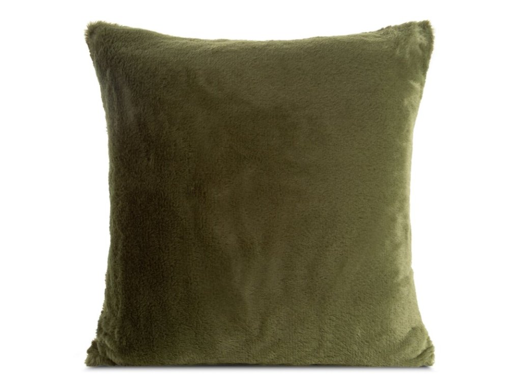 Kožušinová dekoračná obliečka na vankúš NINA v olivovej farbe 45 x 45 cm