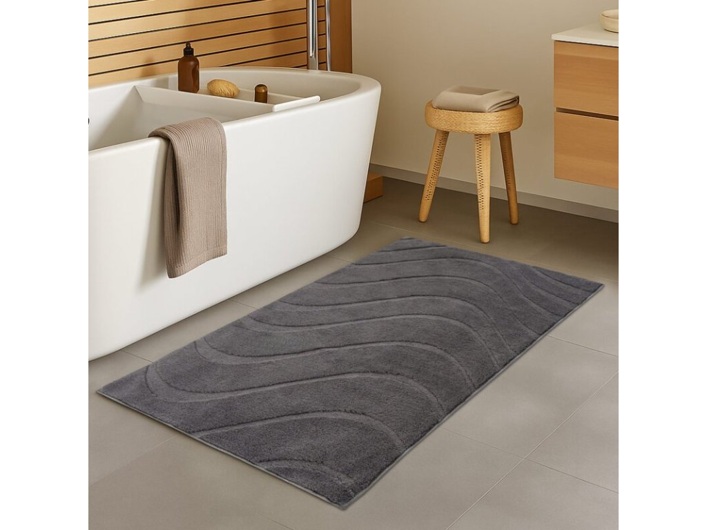 Ak hľadáte moderný koberec, ktorý kombinuje elegantný vzhľad, výnimočnú mäkkosť a praktické vlastnosti, tmavosivý kúpeľňový koberec Waves je presne pre vás.