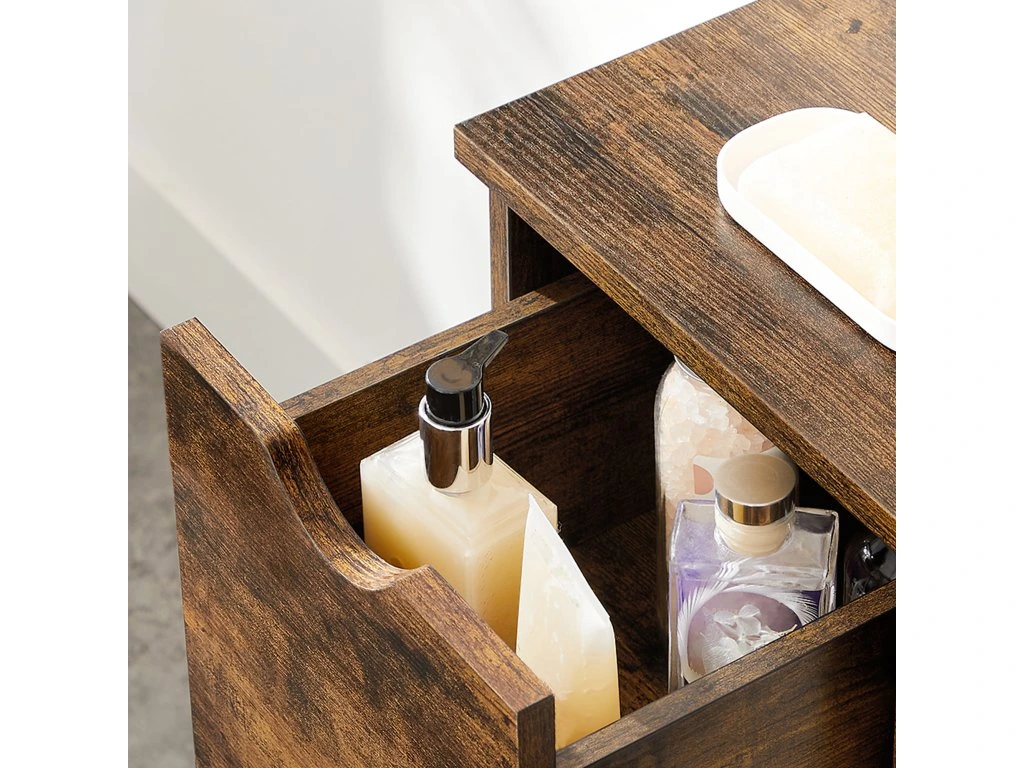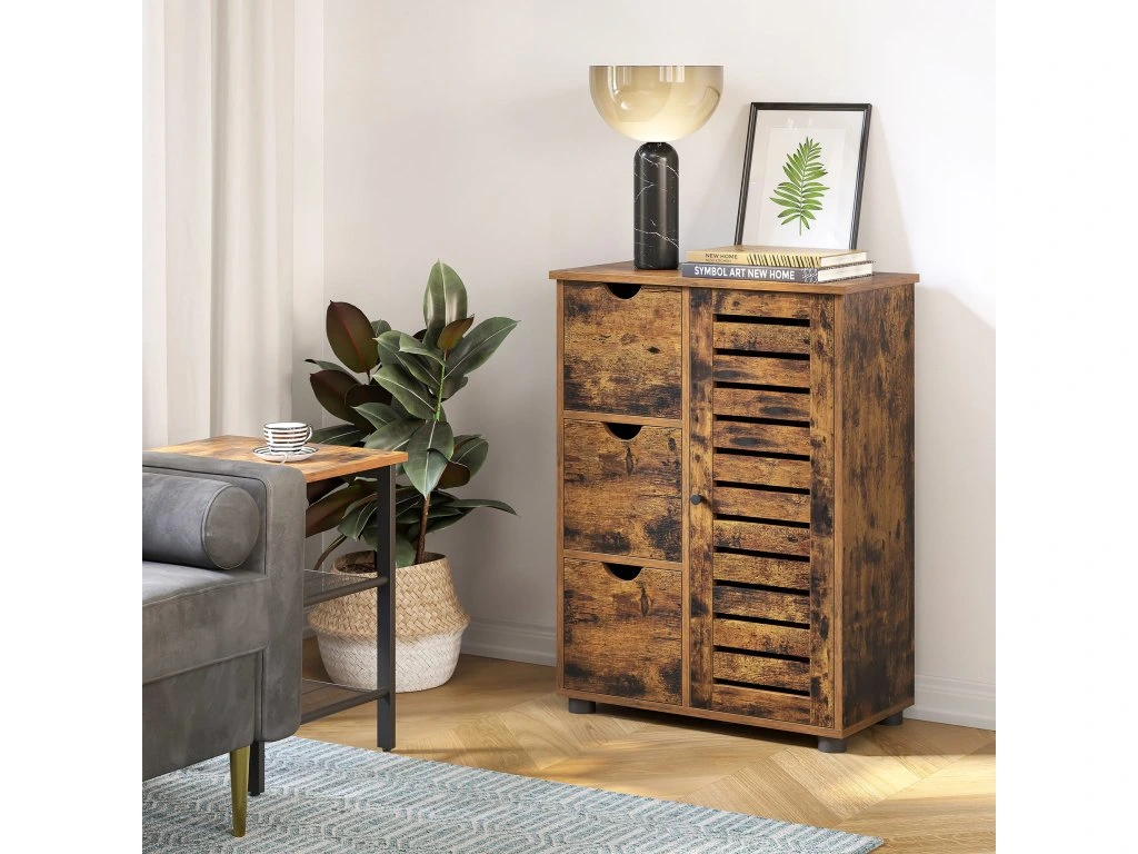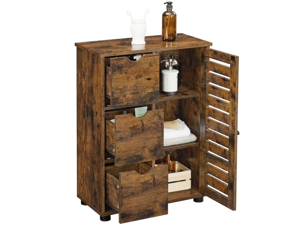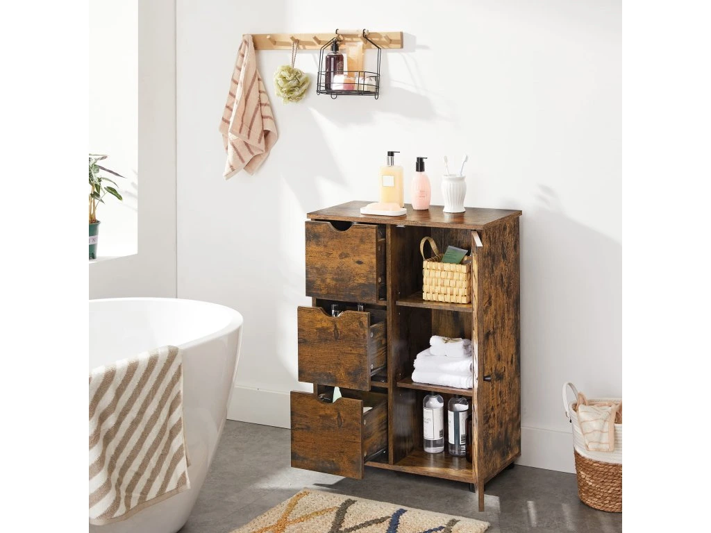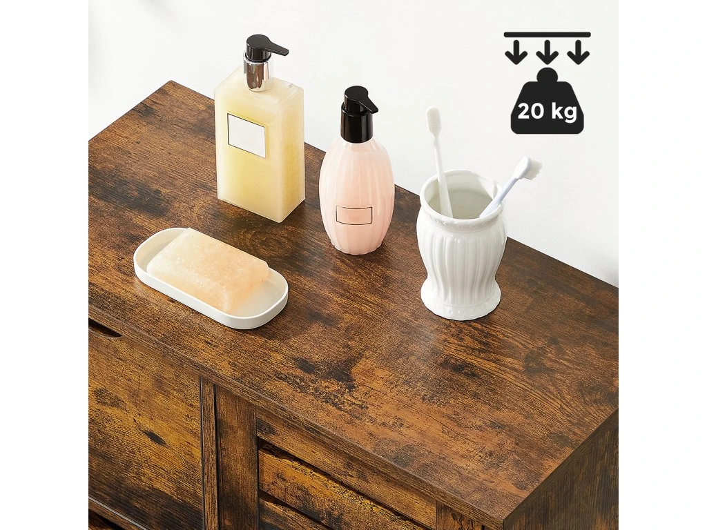 Kúpeľňová skrinka s rustikálnym vzhľadom je perfektná pre tých, ktorí si potrpia na estetickú súhru a poriadok v každej miestnosti – využijete ju však aj v predsieni, spálni alebo pracovni.