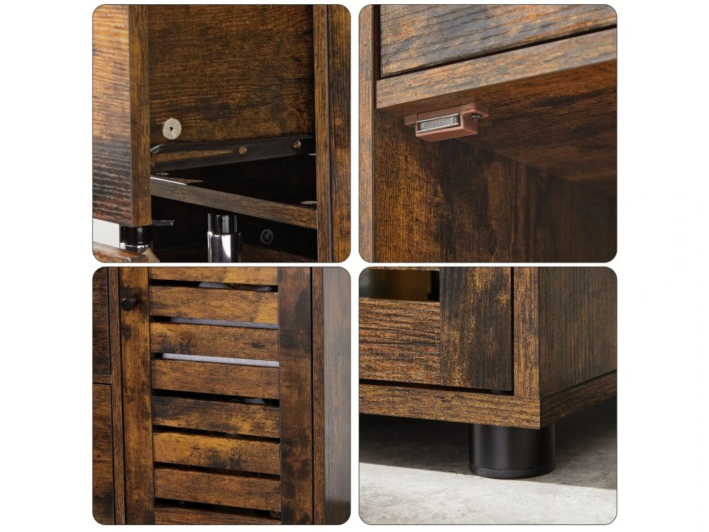Skrinka je vyrobená zo štýlovej laminovanej dosky s rustikálnou povrchovou úpravou, ktorá zaujme aj v modernom interiéri.