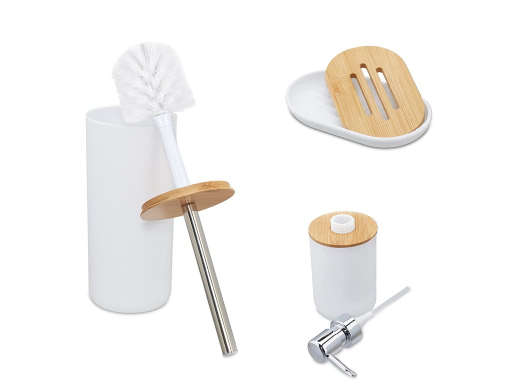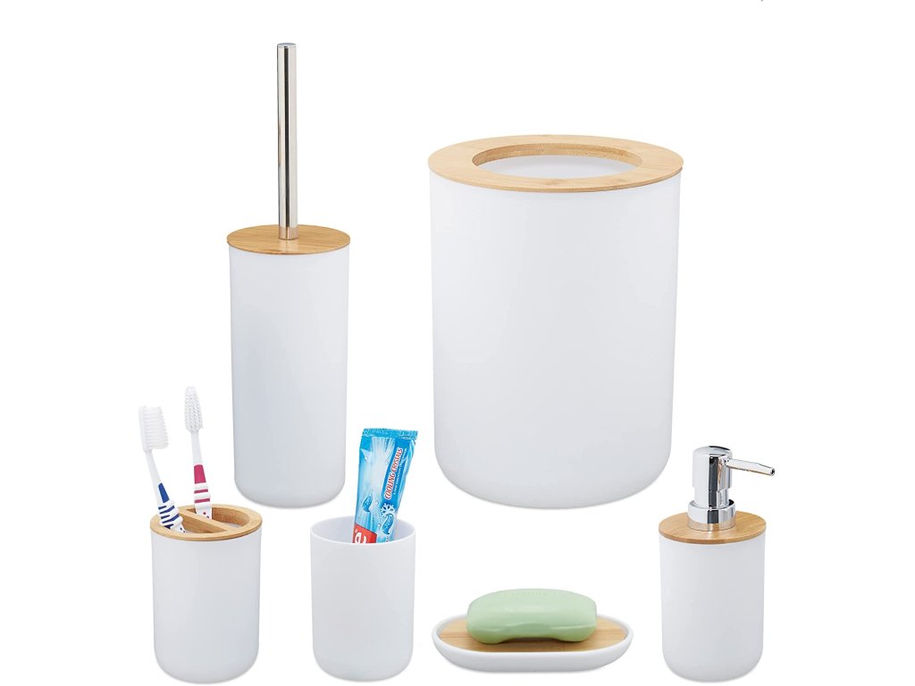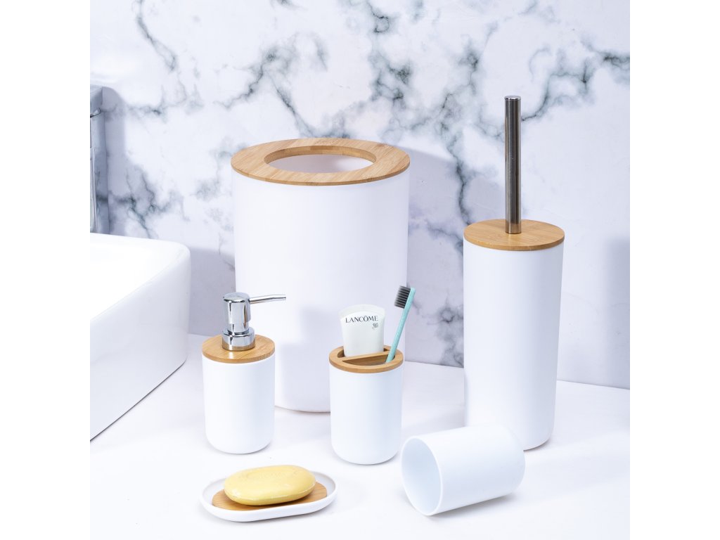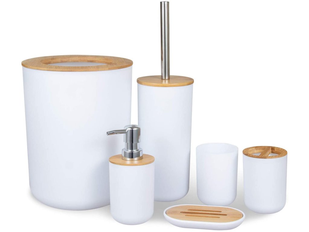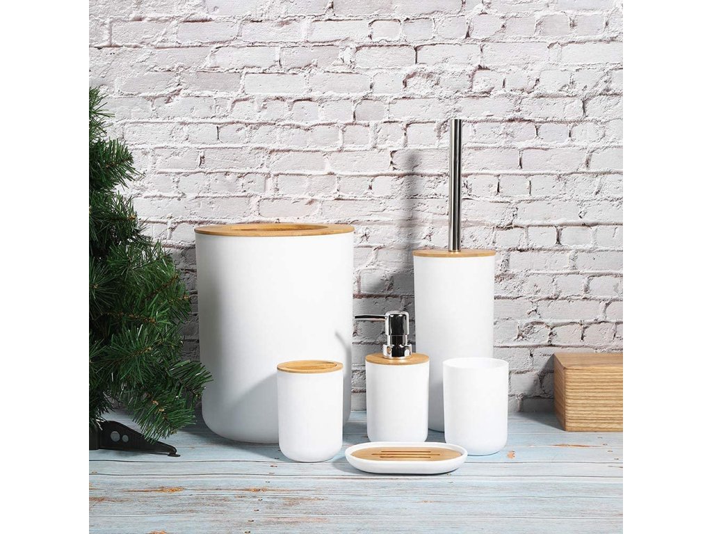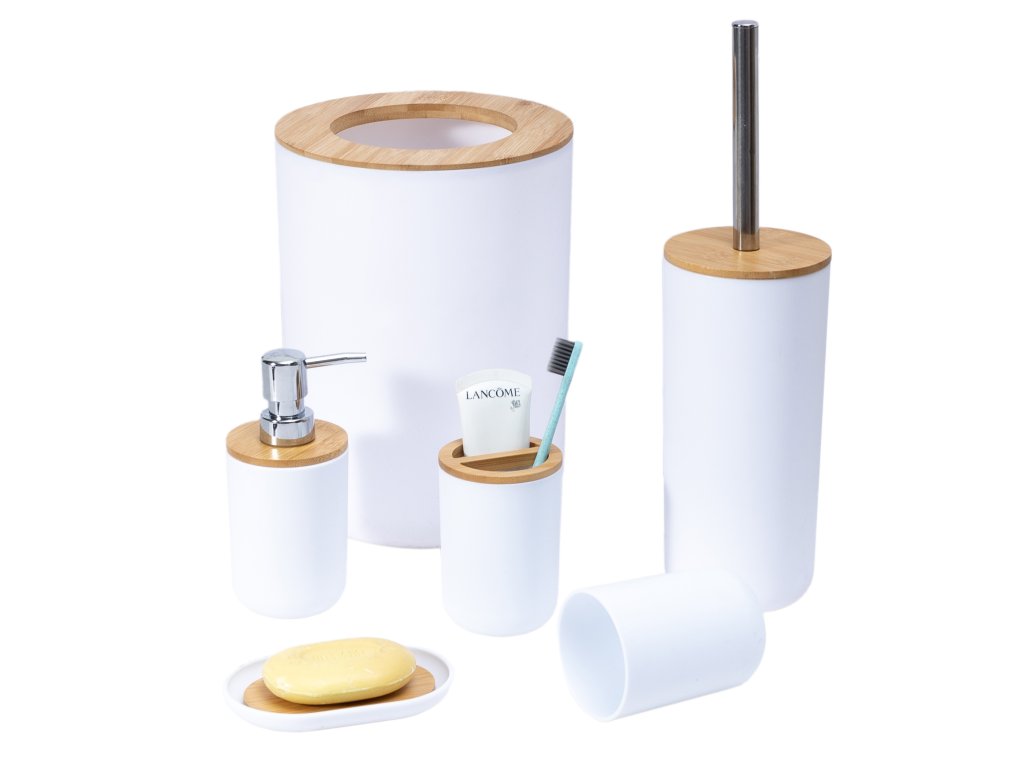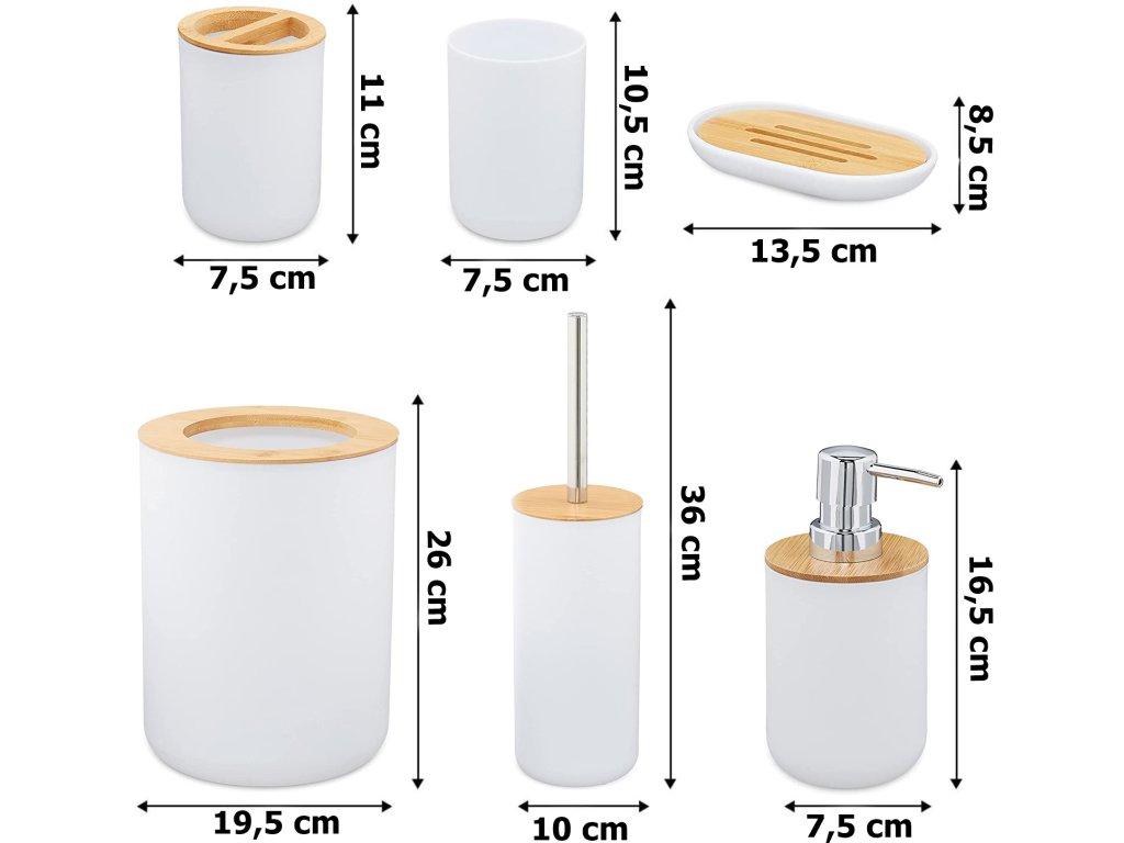 Súprava obsahuje 6 funkčných doplnkov, ktoré zabezpečia poriadok a estetiku v tvojej kúpeľni: