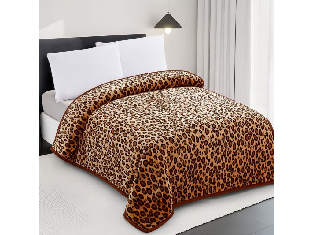 Hrubý, mäkký akrylový materiál s leopardím vzorom prináša dokonalý komfort počas chladných večerov, zatiaľ čo štýlový zvierací motív dodá vašej spálni nádych extravagancie.