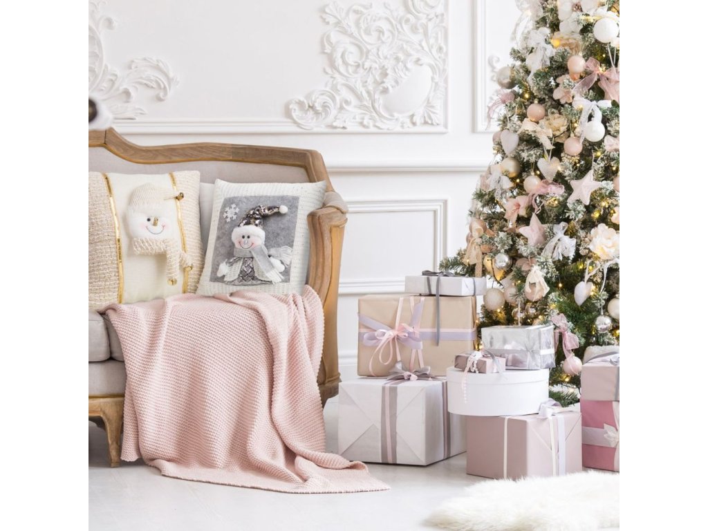 Je zdobená 3D aplikáciou odkazujúcou na nadchádzajúce vianočné obdobie a štrikovaným vzorom, ktorý lemuje obvod dekoračnej obliečky.