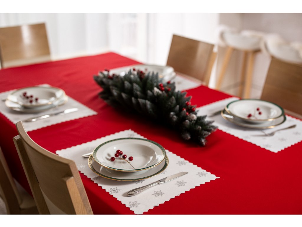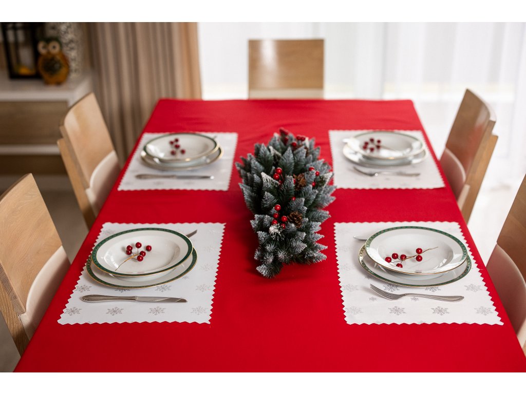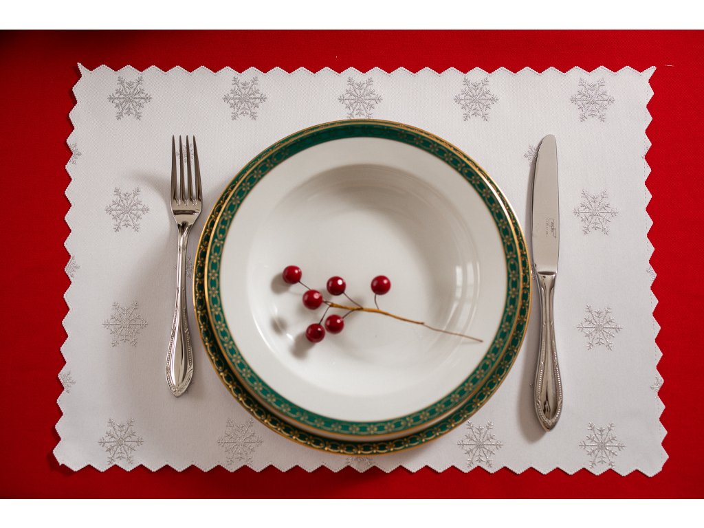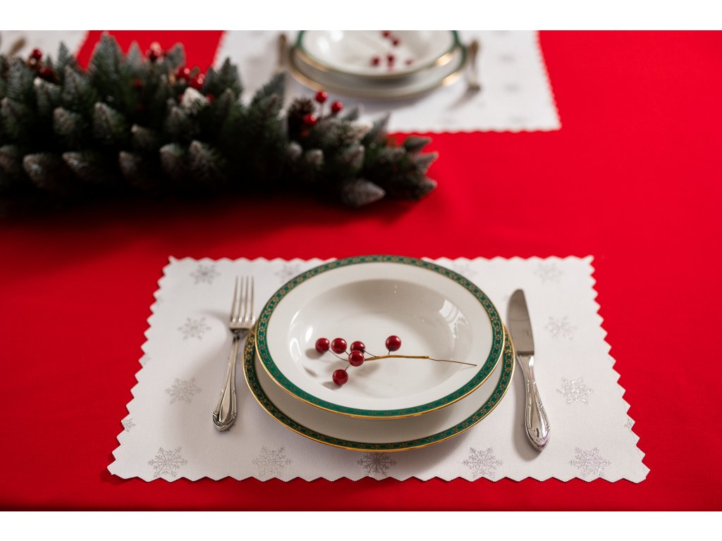 Luxusné vianočné prestieranie v striebornej farbe má okrem estetických funkcií aj praktické funkcie. Chráni dosku stola a pritom pôsobí elegantne.