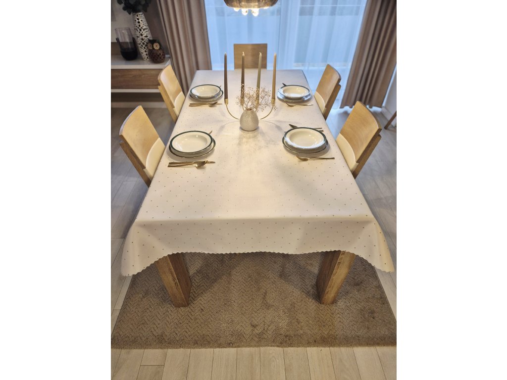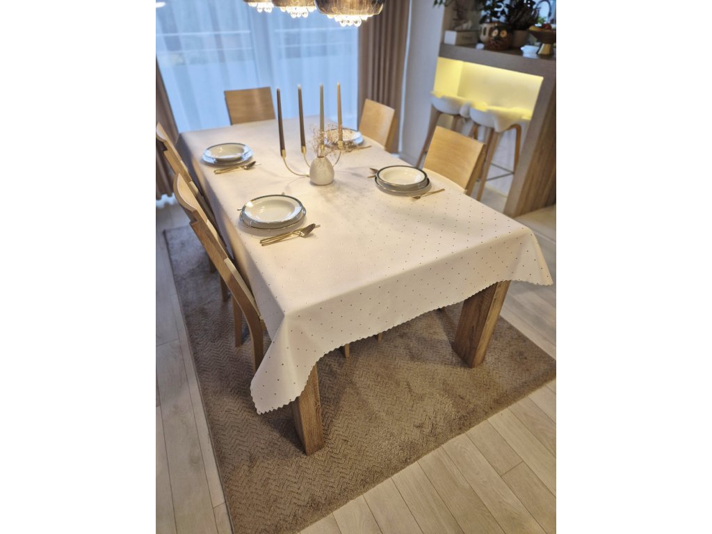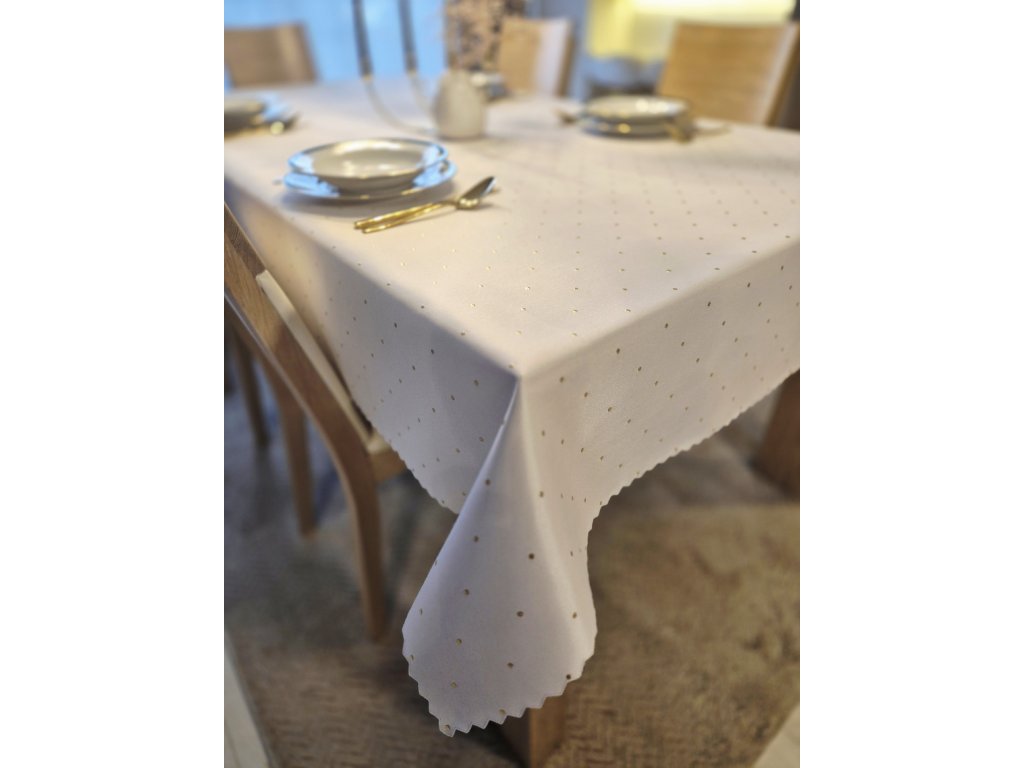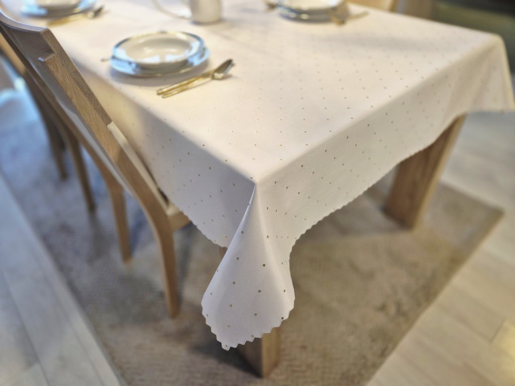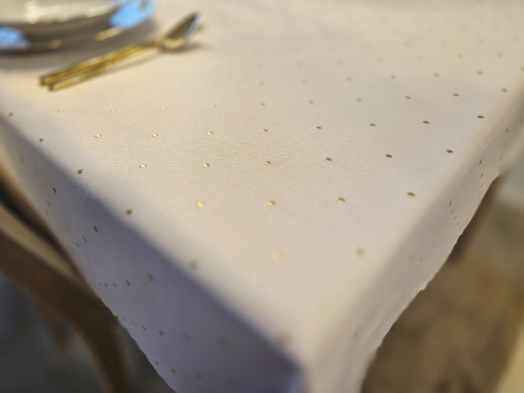 Luxusný obrus na stôl biely so zlatými bodkami -zlatý SW33
