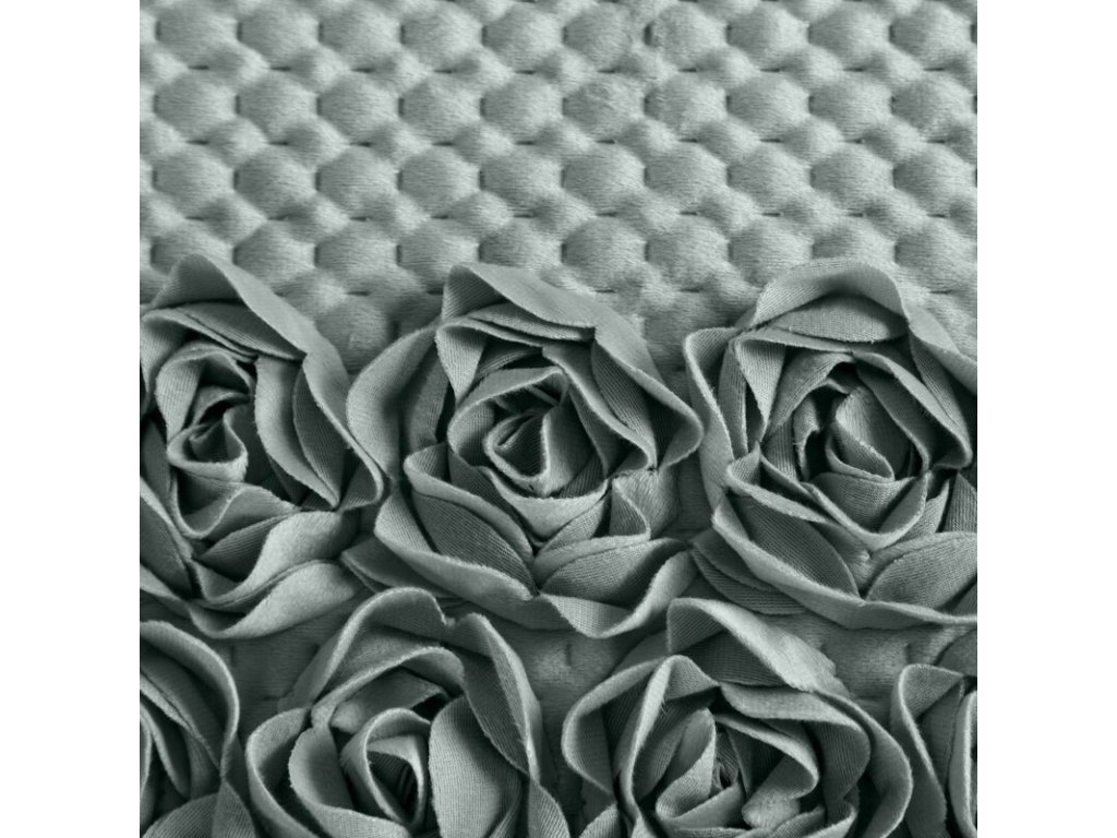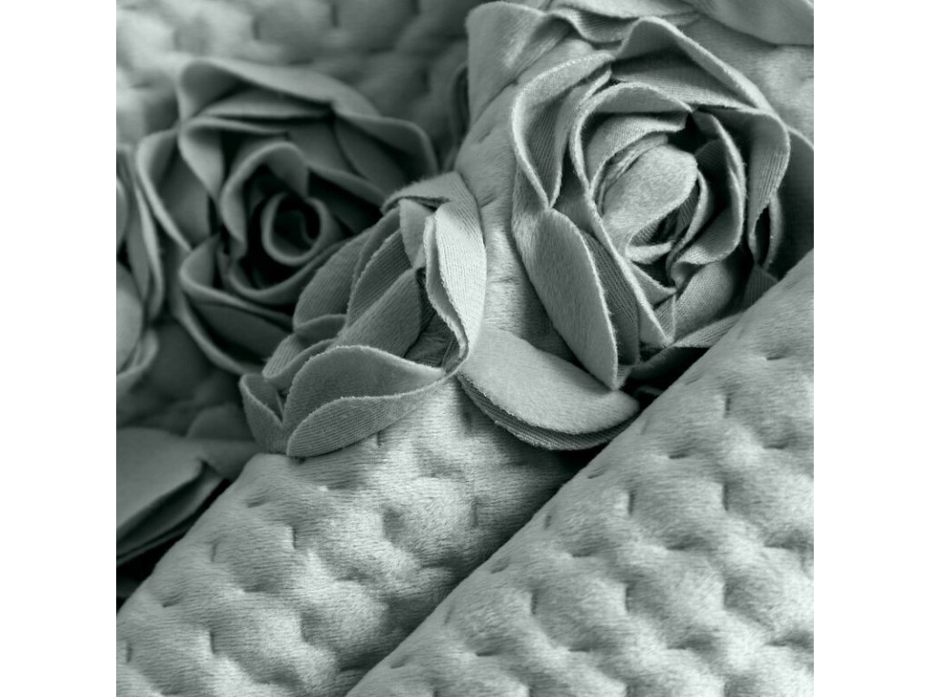 Prehoz je vyrobený z kvalitného mäkkého welvetu, ktorý je príjemný na dotyk a pôsobí luxusným dojmom. Dominantný prvok tvoria ručne tvarované 3D ruže, ktoré vytvárajú atraktívny dekoratívny pás a dodávajú prehozu romantický charakter.