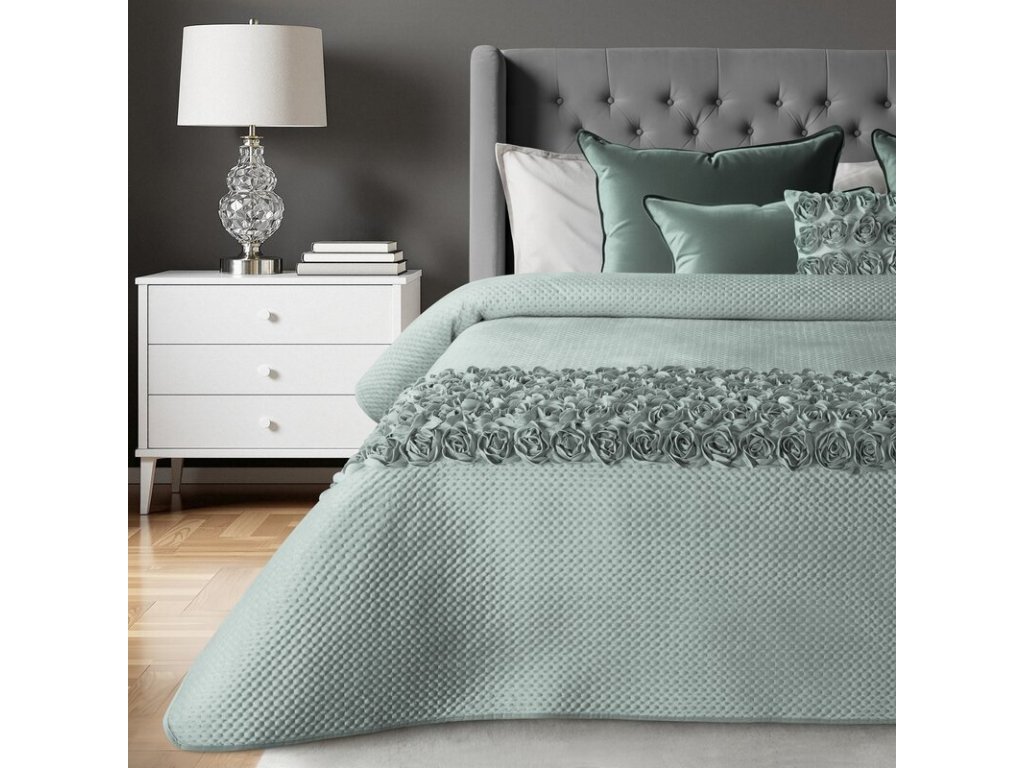 Luxusný prehoz na posteľ s ROSES aplikáciou ruží - mätový