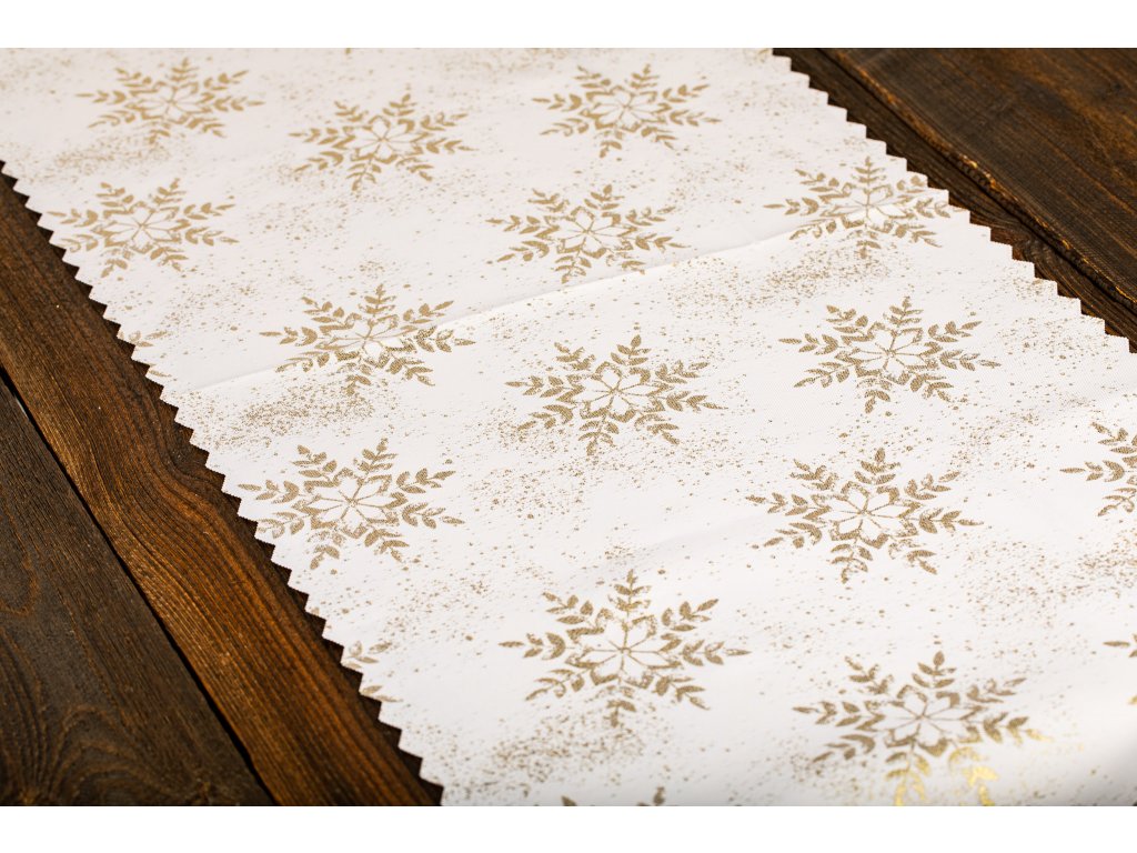 Luxusný Vianočný behúň na stôl s vločkami - zlatý SW14