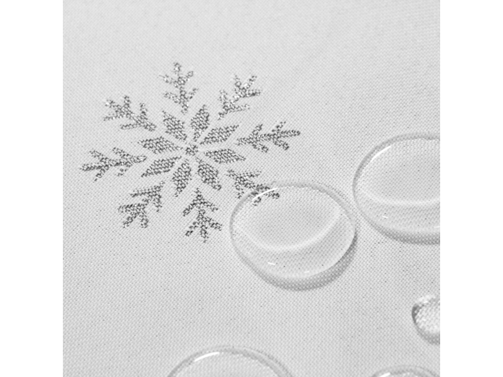 Behúň CHRISTMAS SNOWFLAKE tiež chráni povrch stola pred nečistotami vďaka vlastnostiam odolným voči škvrnám.
