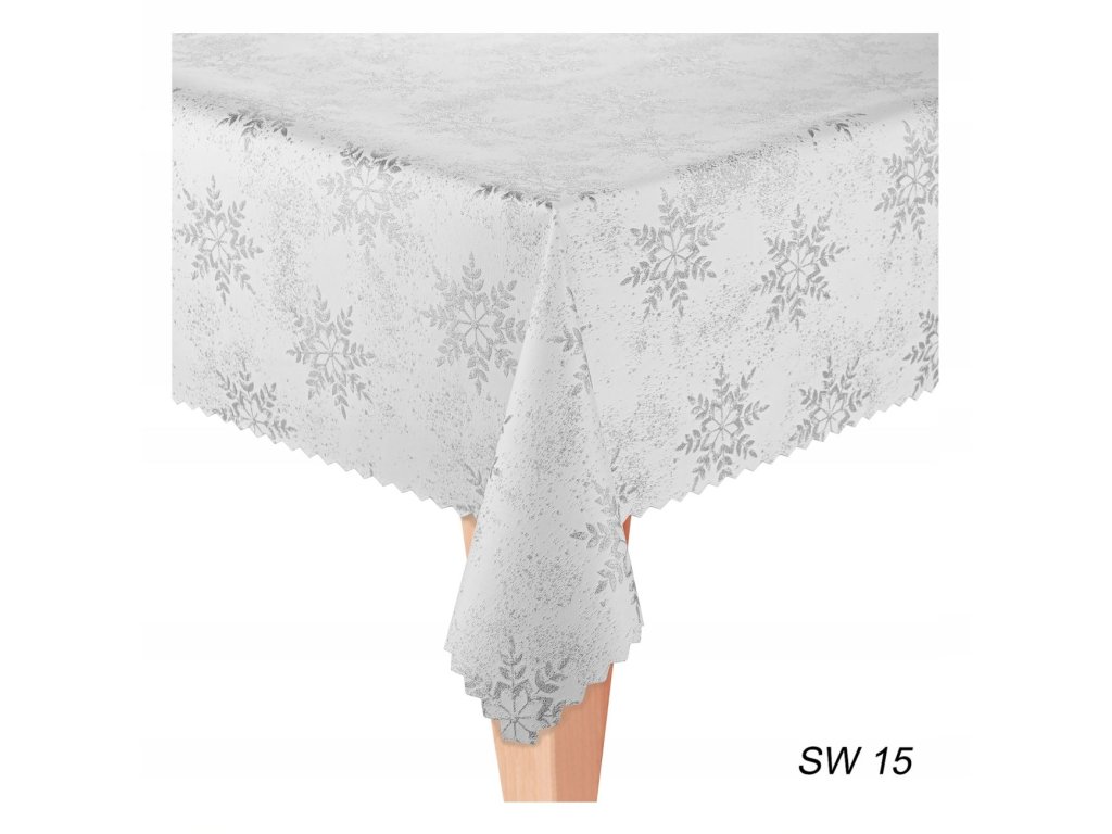 Luxusný Vianočný obrus s vločkami - strieborný SW15