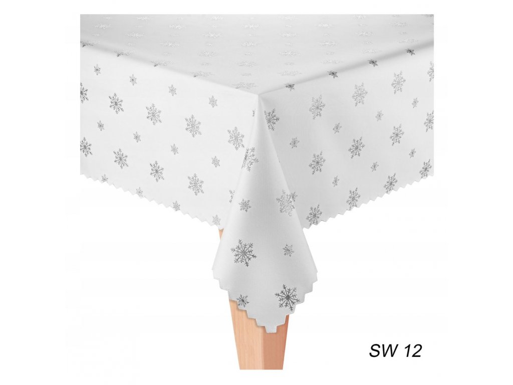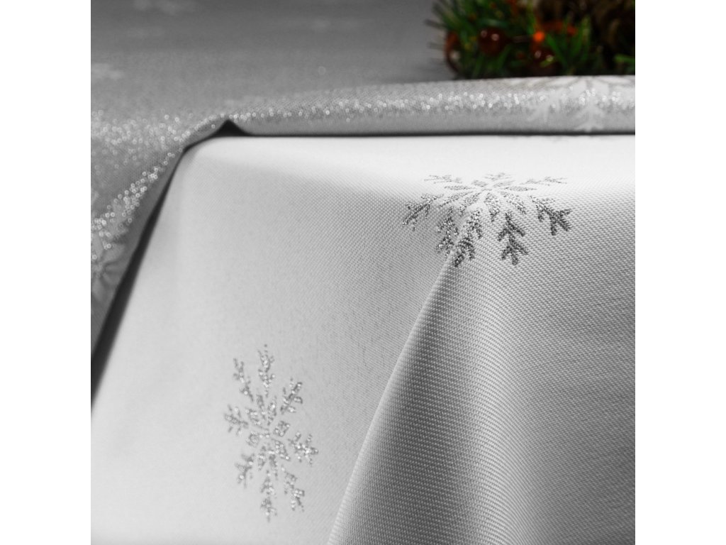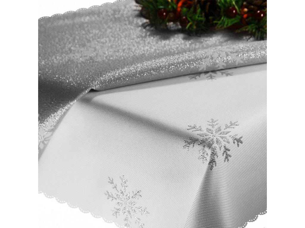 Luxusný Vianočný obrus s vločkami - strieborný SW12