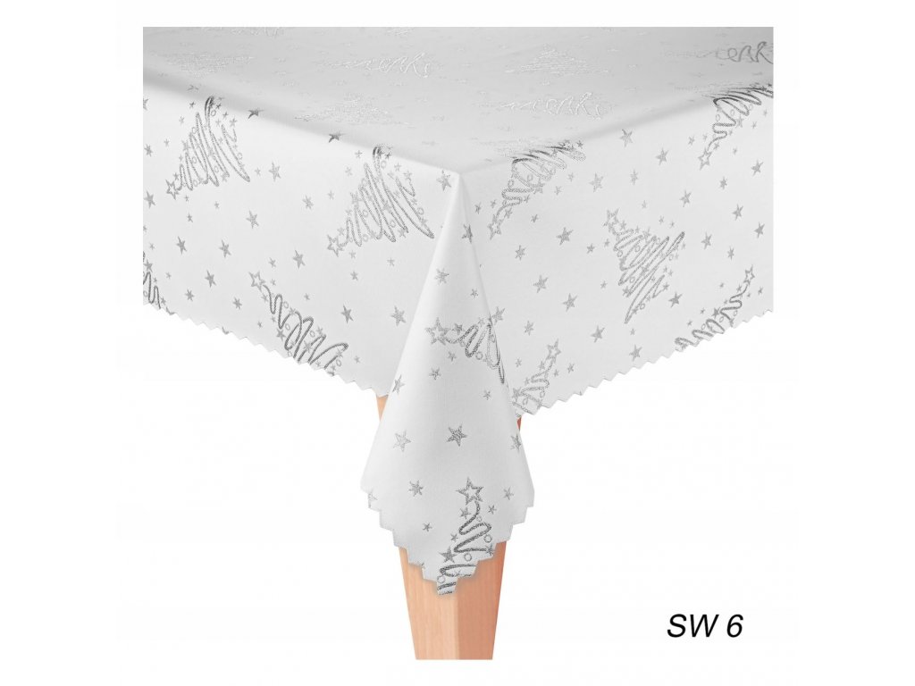 Luxusný Vianočný obrus so stromčekmi - strieborný SW6