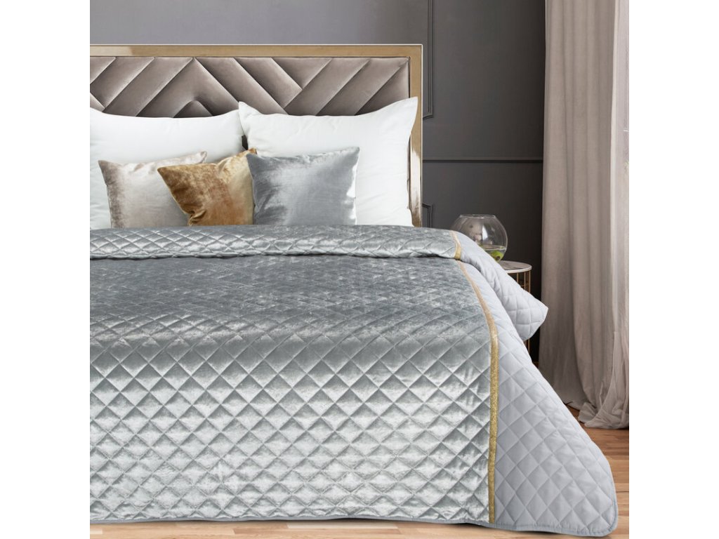 Luxusný zamatový prehoz na posteľ KRISTIN v striebornej farbe