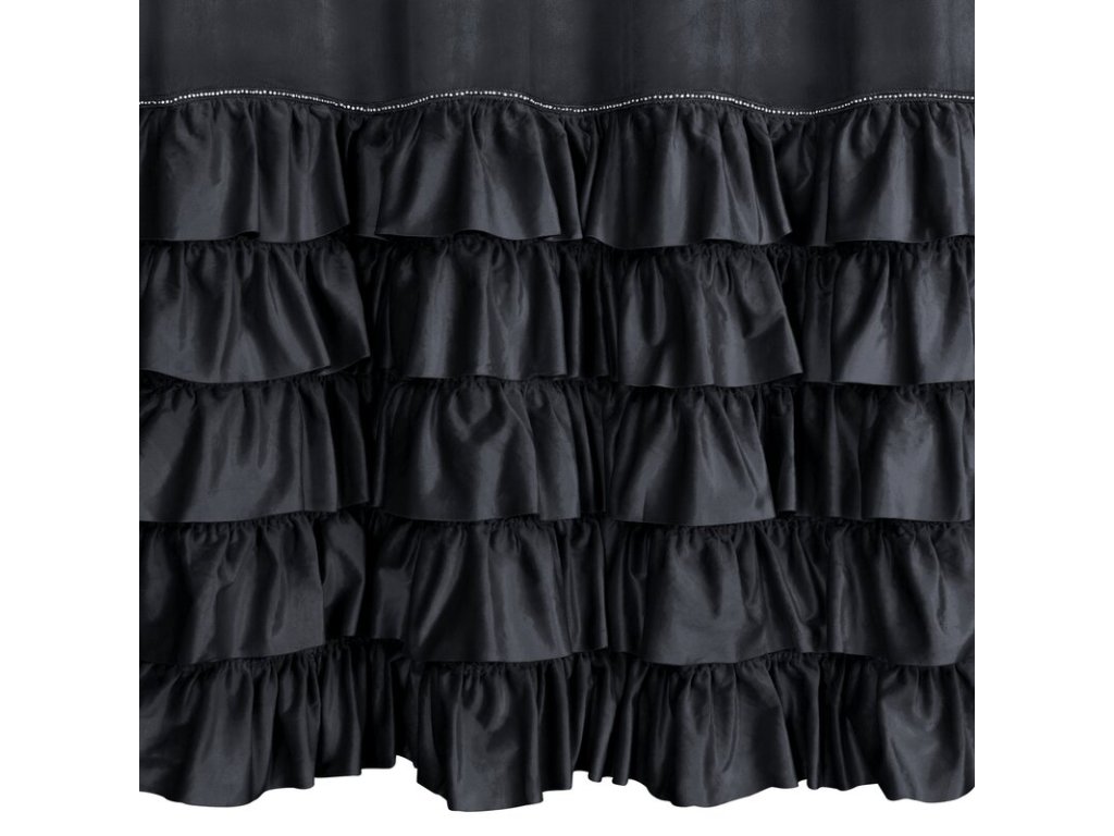 Luxusný záves CARLI na pásku s volánikmi a trblietavým pásom kryštálov - čierny
