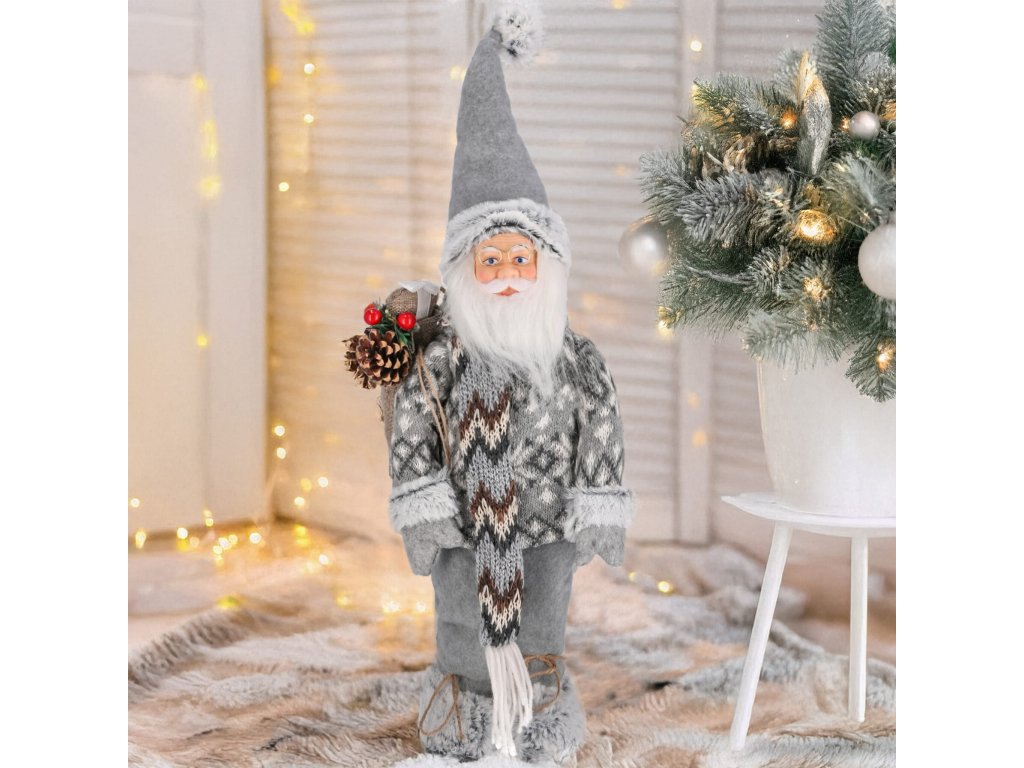 Vianočná figúrka MIKULÁŠ škandinávsky je vyrobený z plastu, na hlave má klobúk lemovaný kožušinou, zakončený brmbolcom.