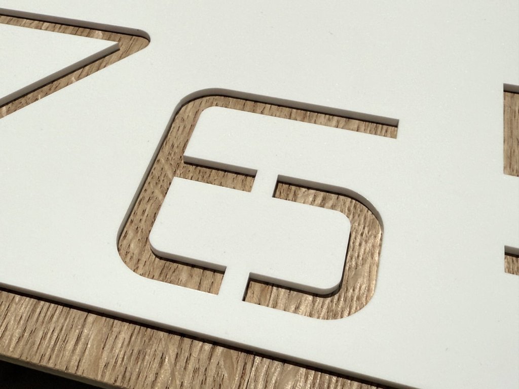 Hodiny sú vyrobené z ekologickej a veľmi tvrdej HDF dosky + prírodný dub. Doska je vyrobená z drevených častí zomletých na vlákna, ktoré sa neskôr upravia živicami a organickými farbivami. Po vysušení je doska lisovaná pri vysokej teplote a vysokom tlaku. Takto sa vytvorí doska s vysokou hustotou až o 50% väčšia ako masívne drevo.