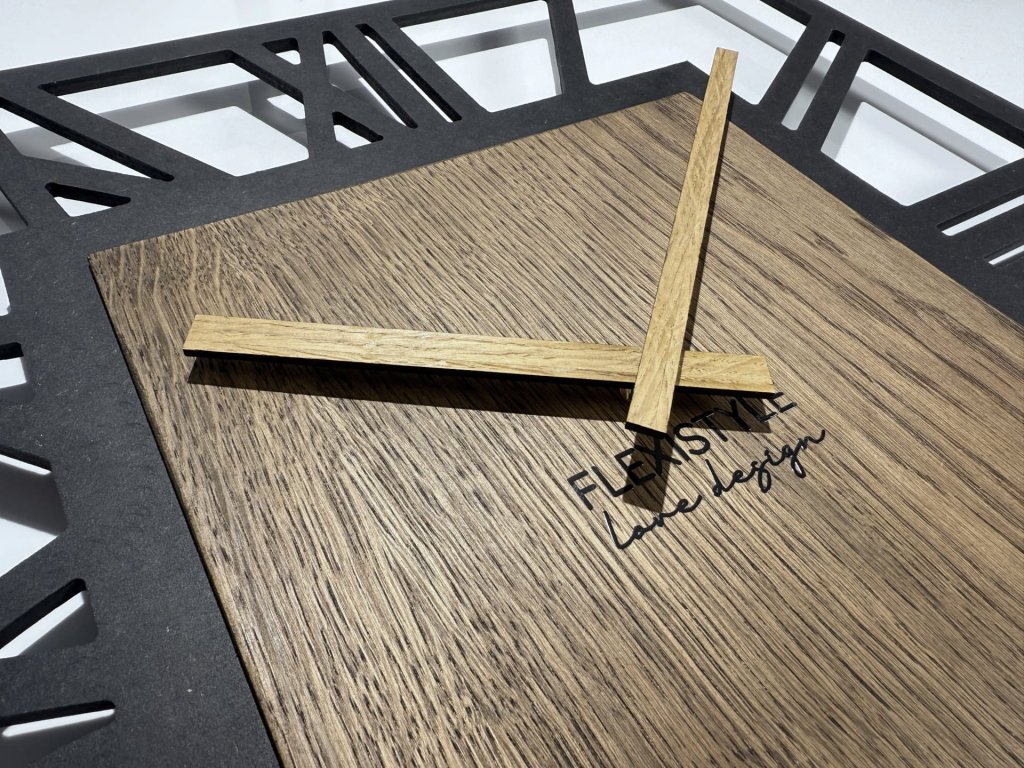 ✔️ Premyslené detaily – drevené ručičky ladia s ciferníkom, zatiaľ čo rímske číslice vyrezané do materiálu vytvárajú efektný, ažurový dizajn.