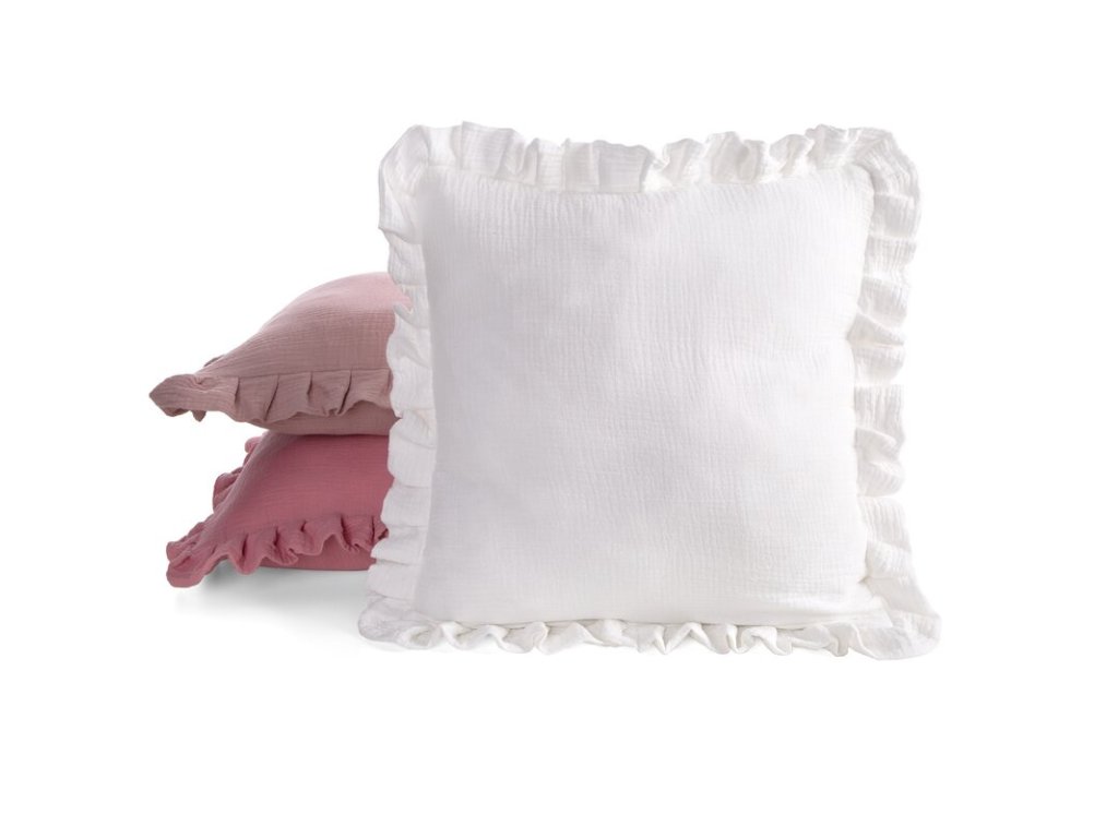 Obliečka na vankúš MUSLIN 1 je jemný detail, ktorý interiéru okamžite dodá ľahkosť a prirodzenú eleganciu. Je ušitá z príjemného mušelínu zo 100 % bavlny, ktorý vyniká vzdušnou štruktúrou a hebkým dotykom. Po obvode ju zdobí decentný volán, vďaka ktorému pôsobí romanticky, no stále vkusne – ideálne, ak chcete zútulniť spálňu, obývačku alebo detskú izbu bez výrazných zásahov.