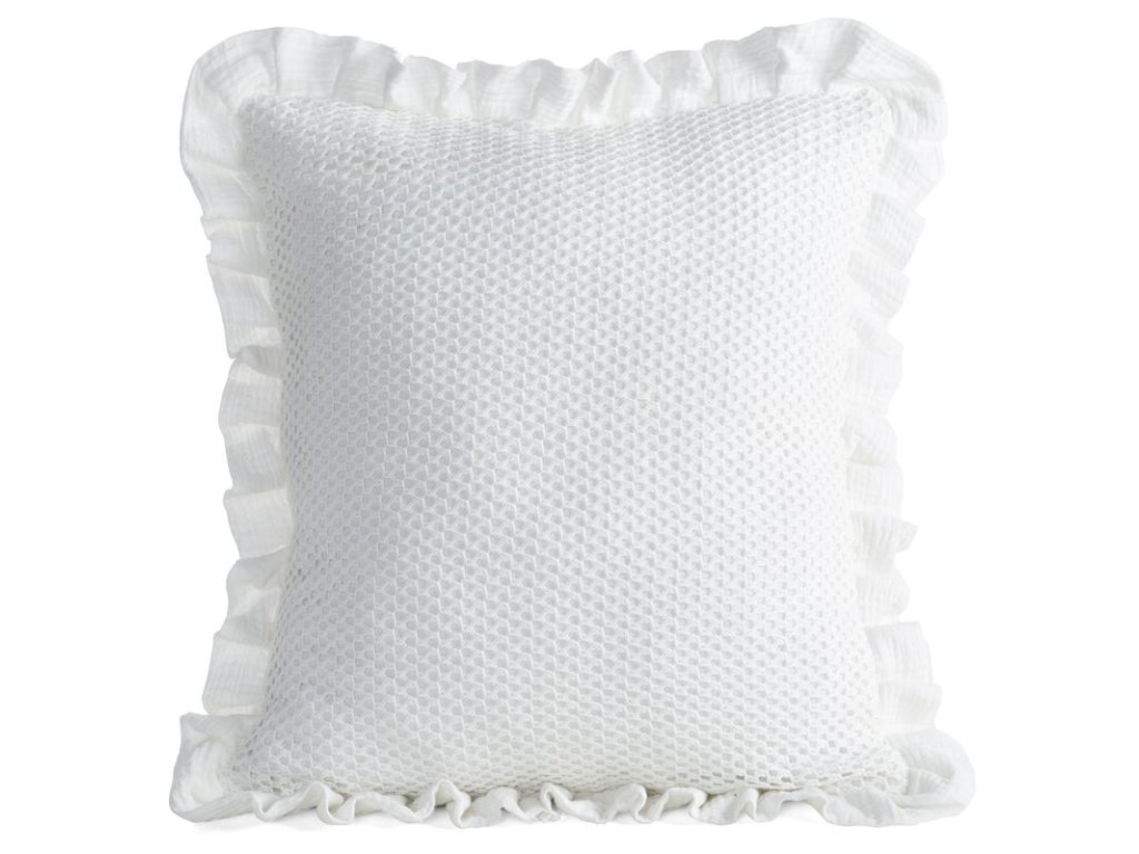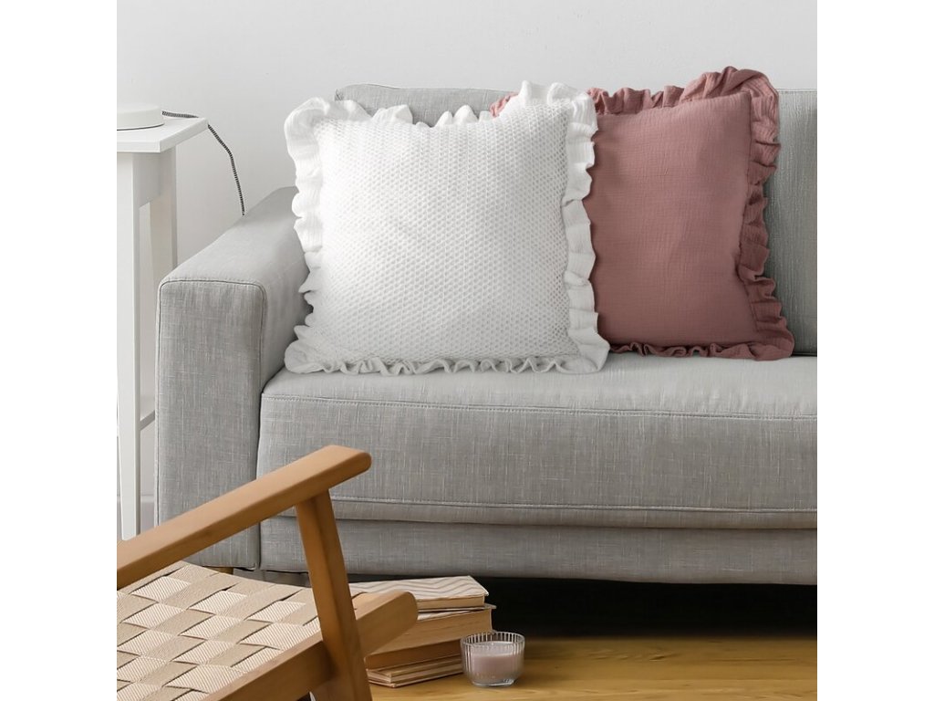 Obliečka na vankúš MUSLIN 2 spája prirodzenú jemnosť mušelínu s detailom, ktorý pôsobí dekoratívne a premyslene. Povrch dopĺňa elegantná ozdobná sieťka a po obvode ju zvýrazňuje volán, vďaka čomu vankúš vyzerá upravene aj bez ďalších doplnkov. Ľahký materiál je príjemný na dotyk a vnáša do priestoru vzdušnosť – ideálnu pre štýly, ktoré stoja na textúrach a jemných vrstvách.
