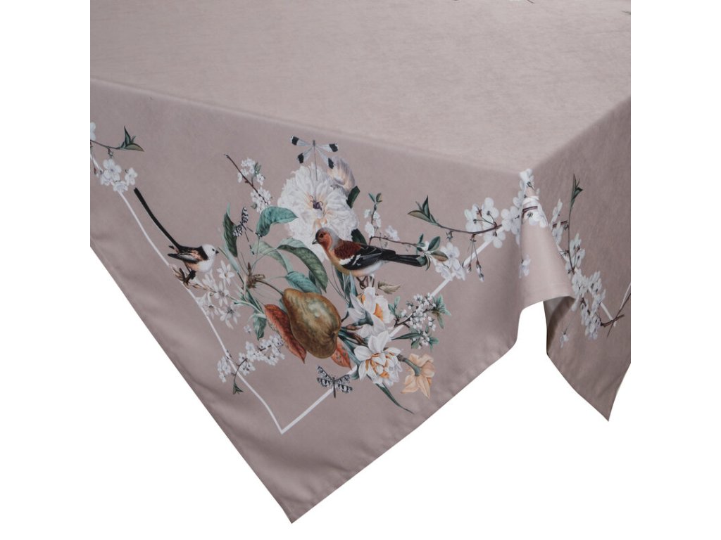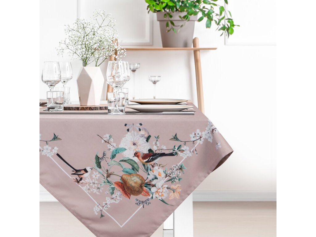 Béžový látkový obrus s kvalitnou potlačou rastlín je ideálnou voľbou pre milovníkov prírody a jemných detailov.