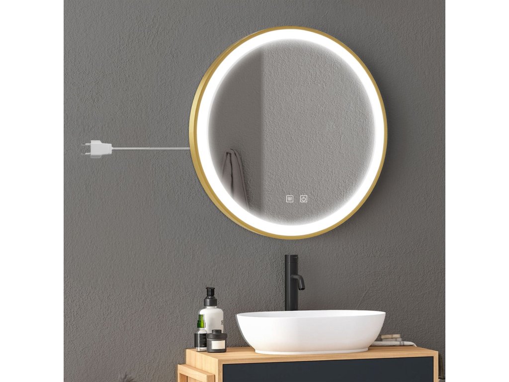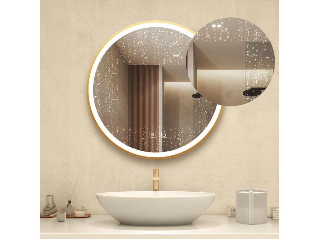 Okrúhle zrkadlo so zlatým rámom a integrovaným LED osvetlením je skvelou voľbou pre všetkých, ktorí si potrpia na pohodlie a moderný štýl.