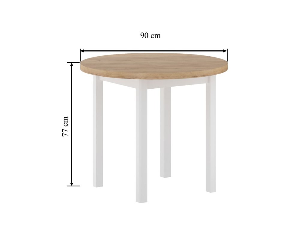 Okrúhly jedálenský stôl (dubový zlatý craft/biely) Fi90