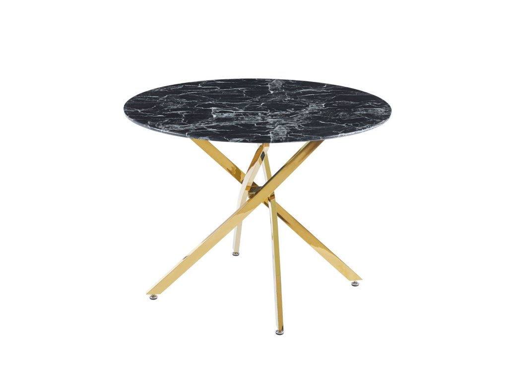 Okrúhly jedálenský stôl 100 cm – Čierny mramor / Zlaté nohy