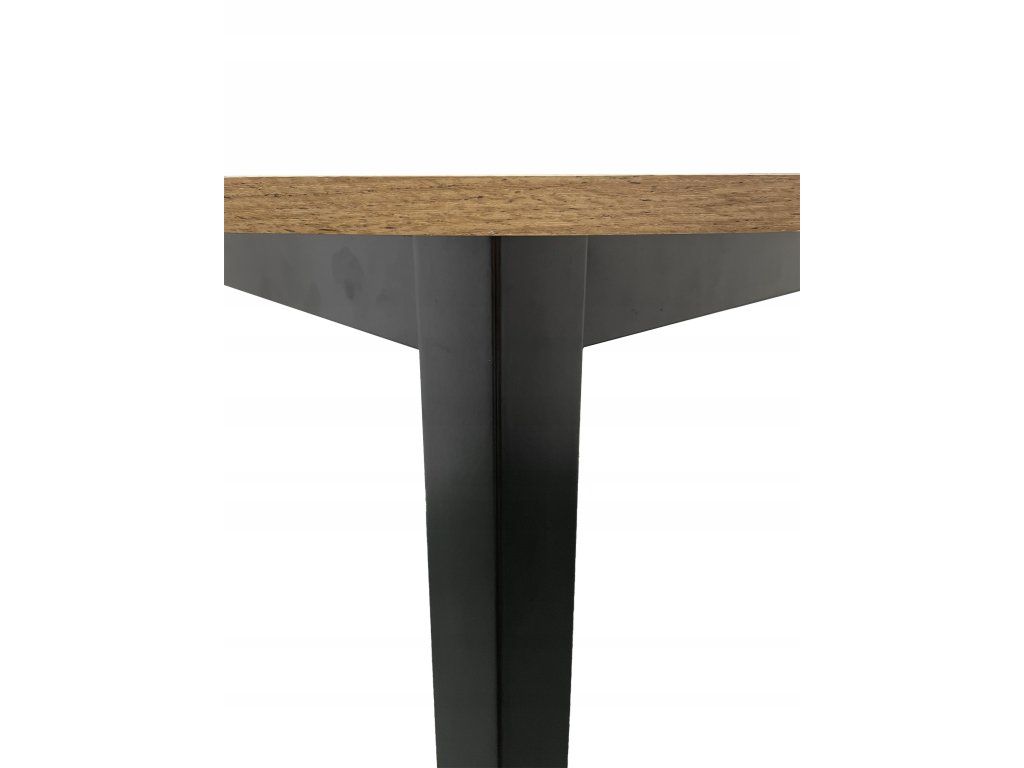 Doska stola je vyrobená z MDF dosky hrúbky 18 mm s povrchovou úpravou imitujúcou dubové drevo, čo zaručuje odolnosť a jednoduchú údržbu. Stôl je dodávaný ako súprava na domácu montáž – všetky potrebné montážne prvky sú súčasťou balenia. Výška 76 cm zodpovedá štandardným ergonomickým požiadavkám na pohodlné sedenie.