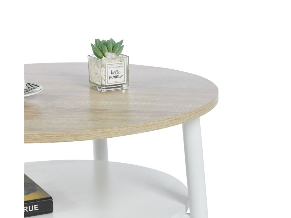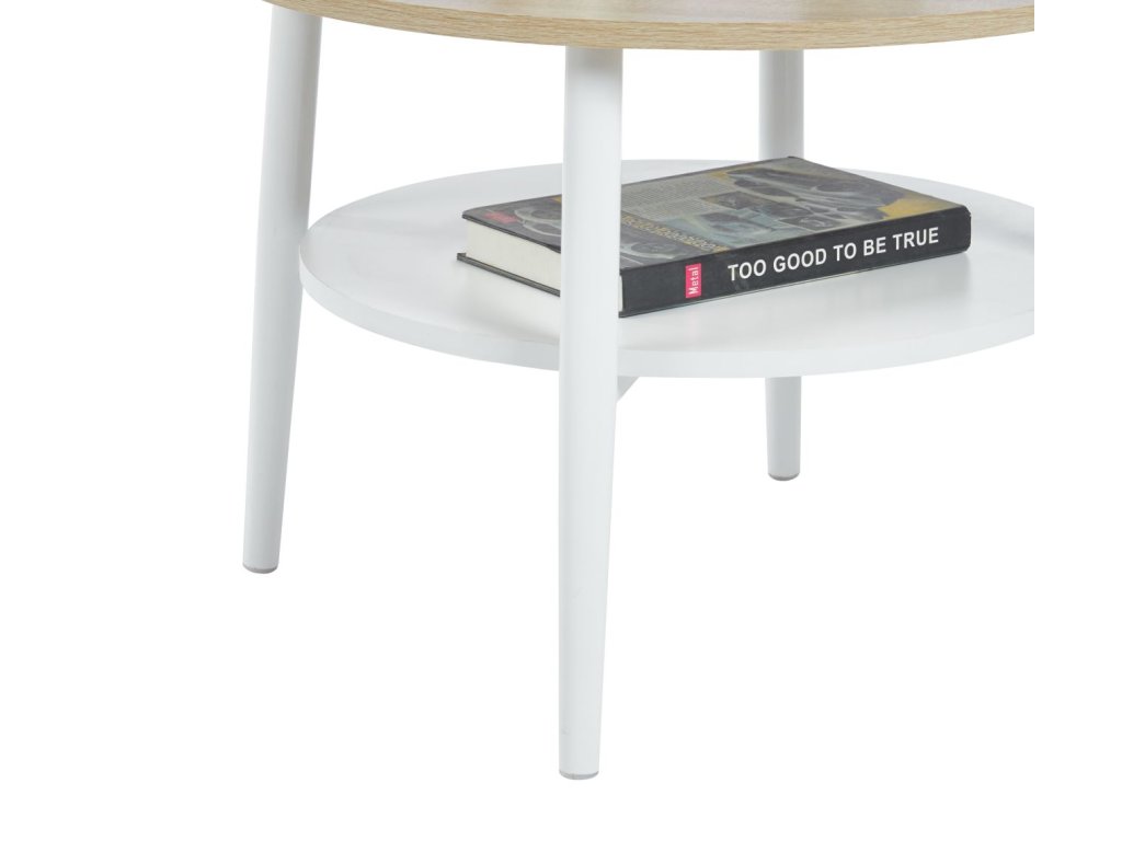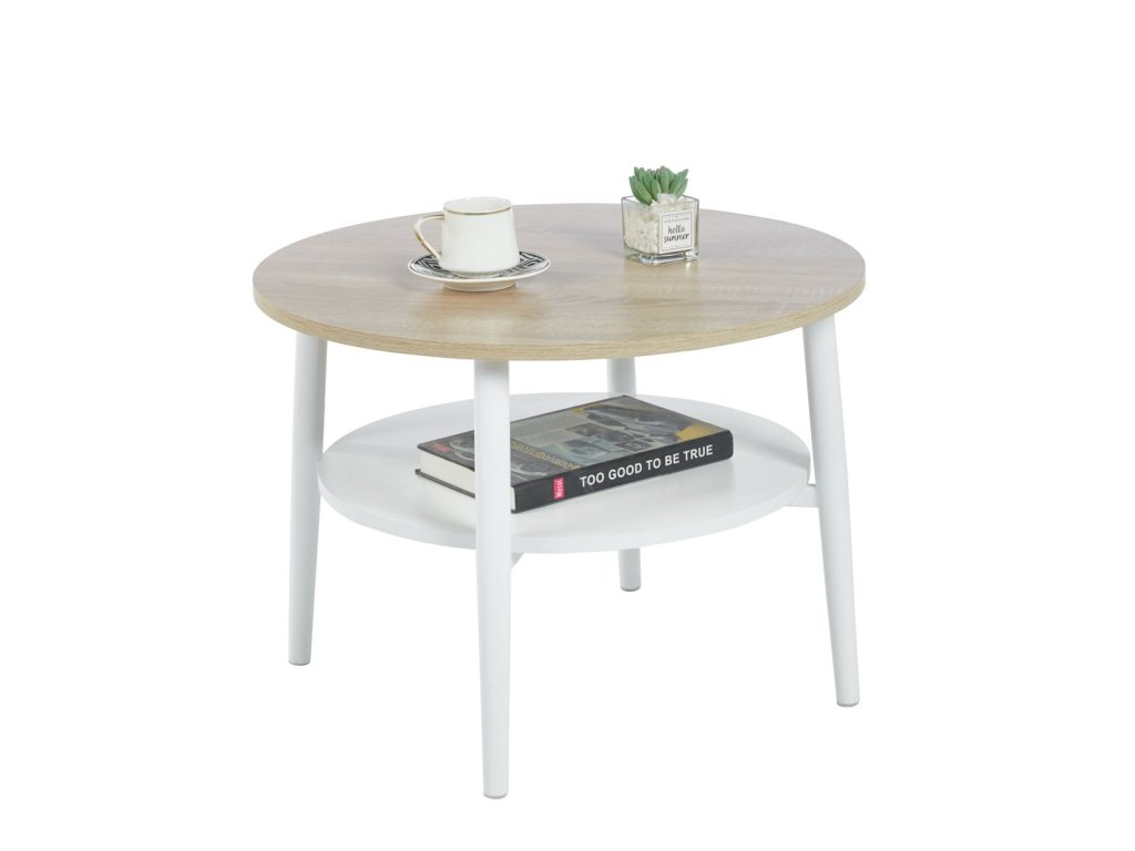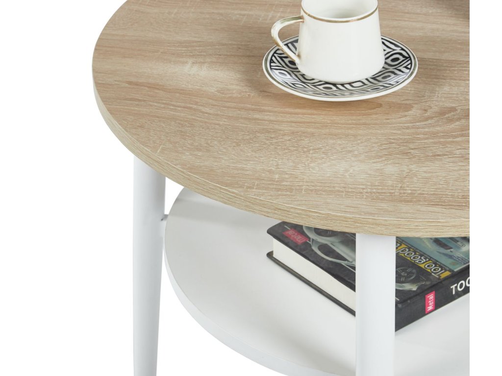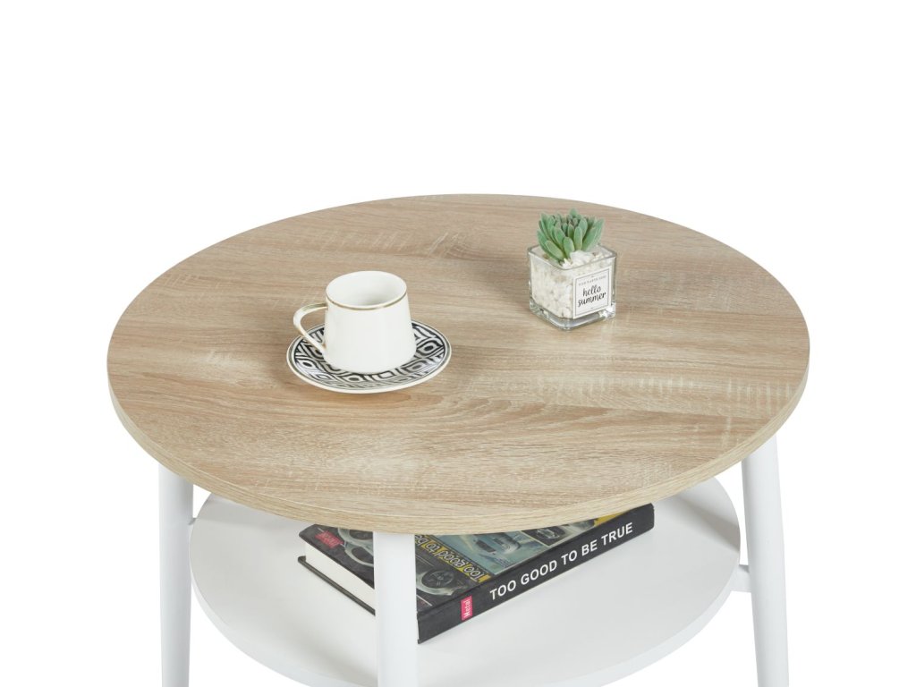 Okrúhly kávový stolík 60 cm - Dub sonoma s bielou kovovou konštrukciou